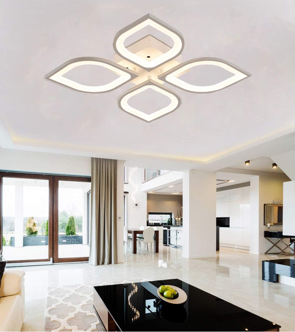 LITFAD 4 Heads Petal Semi Flush Light Monochromatic LED Ceiling Light Fixture 110-120V 40W Modern Acrylic Ceiling Lamp with White Metal Canopy for Living Room Bedroom Restaurant - Warm Light