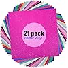 Glitter Vinyl Sheets Glossy and Matte Shimmer Permanent Vinyl Pack -12” X 12” 21 Pack Glitter Viny1 Permanent for Decor, Sticker