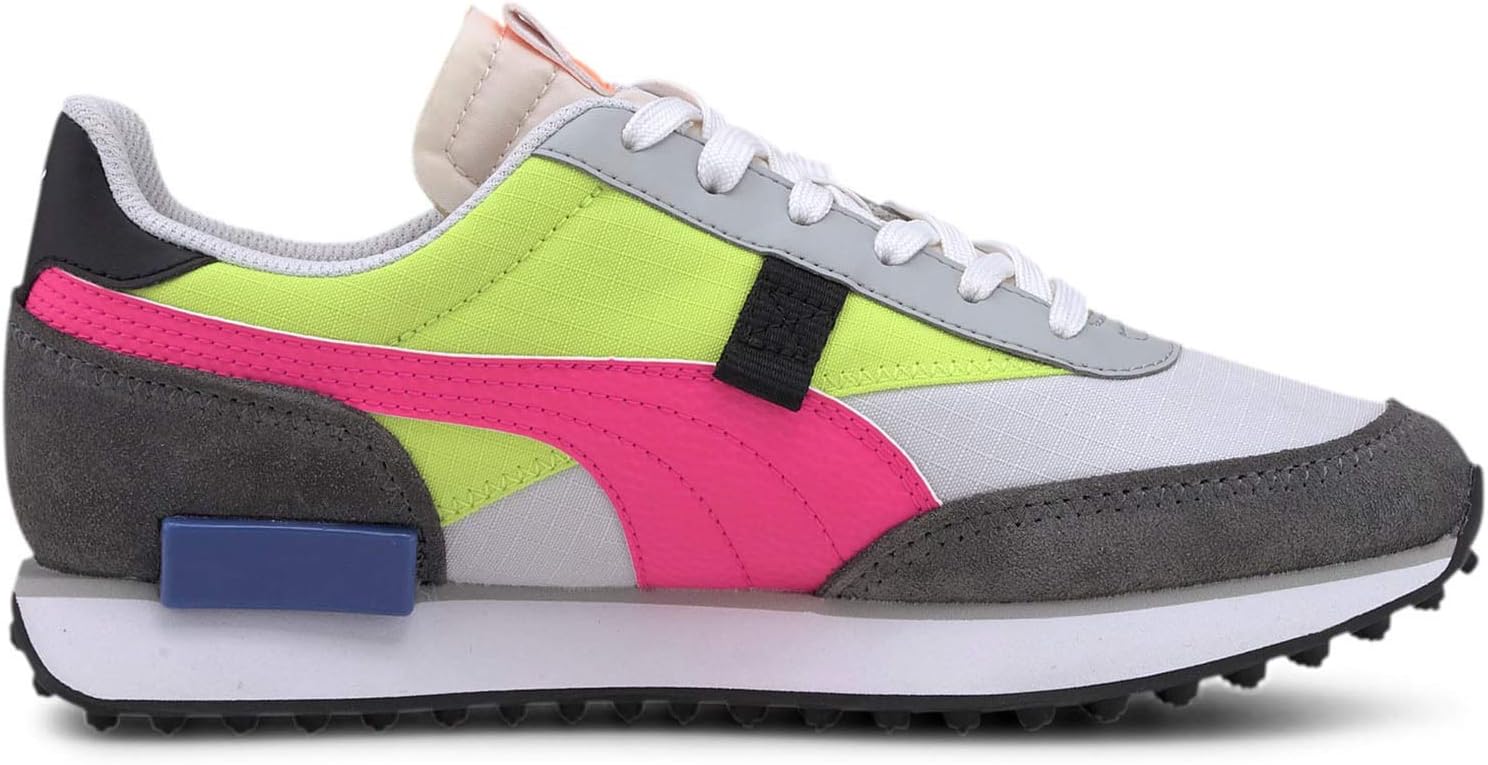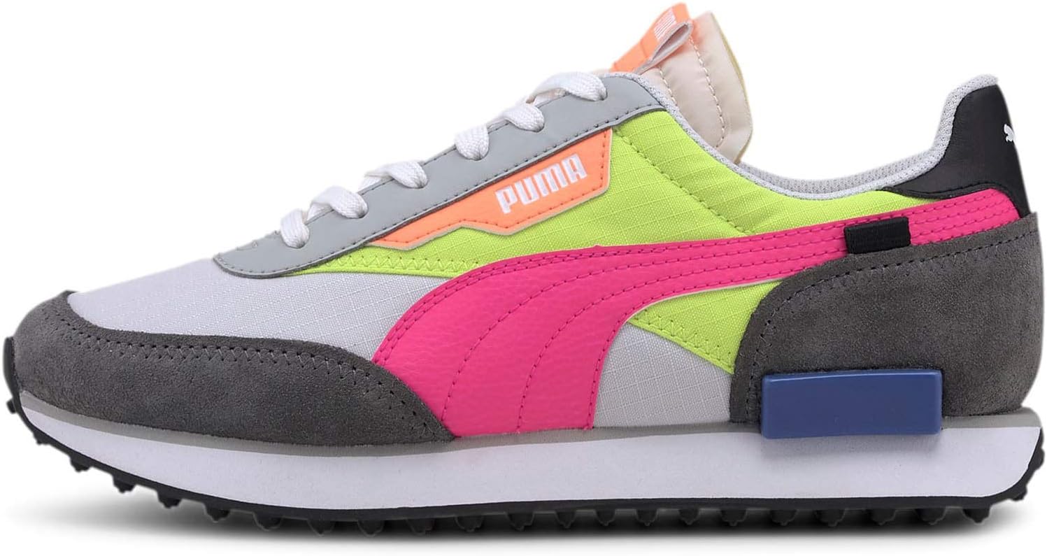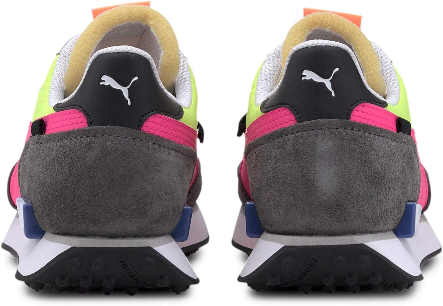 PUMA Women's Rider Play On Sneakers, Dark Grey/White/Pink/Yellow, 10.5 Medium US