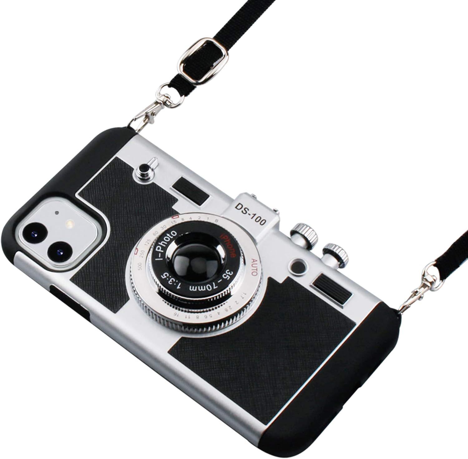 Emily in Paris iPhone 11 Case Awsaccy 3D Cool Unique Cute Camera Design Case + Silicone Cover with Long Strap Rope (Moderate Hardness), Black