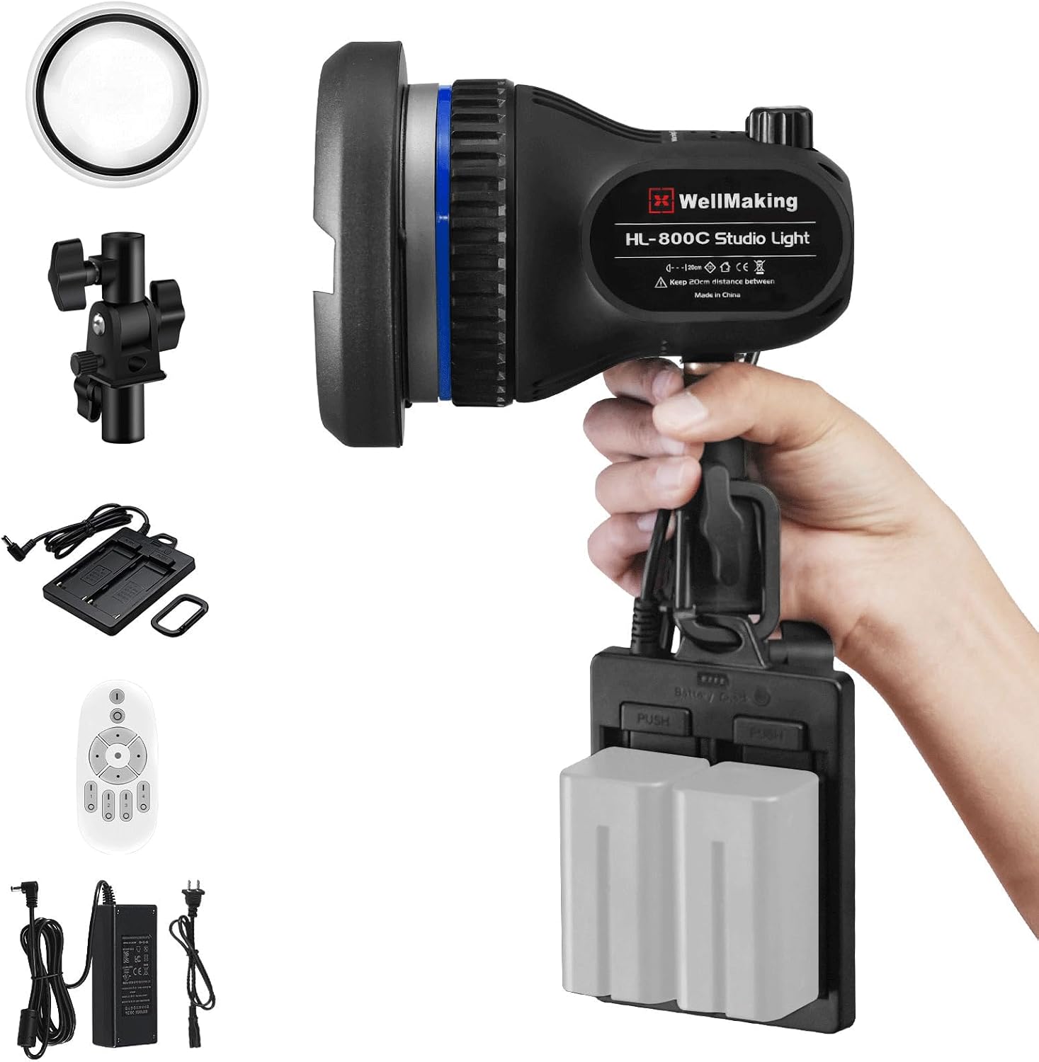 Wellmaking 80W Luz LED portátil Luz continua COB Foco Luz de video CRI 97+ Lente Fresnel liviana regulable sin ruido Fuente de alimentación AC/DC Montaje Bowens Luz portátil para fotografía