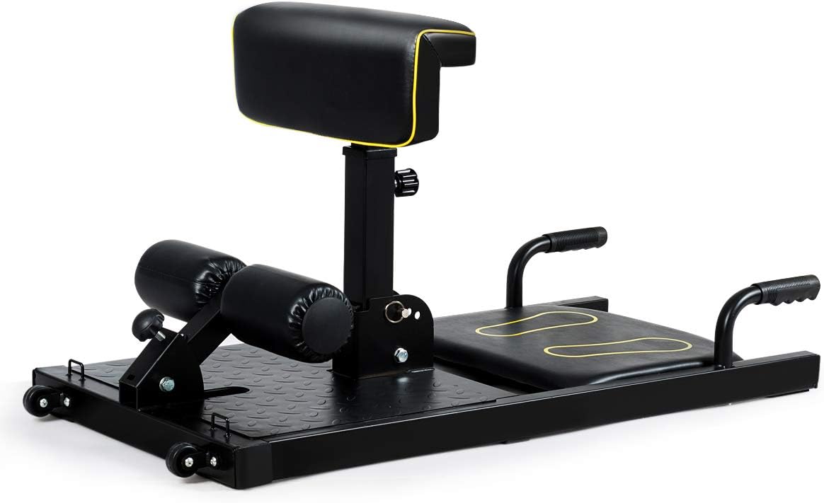 Durable & Heavy Duty: Made of sturdy and thickened iron pipes, the GYMAX squat machine offers you large load-bearing ability up to 220lbs. The T-shape bottom has large contact area with ground,avoiding turning over during exercise.