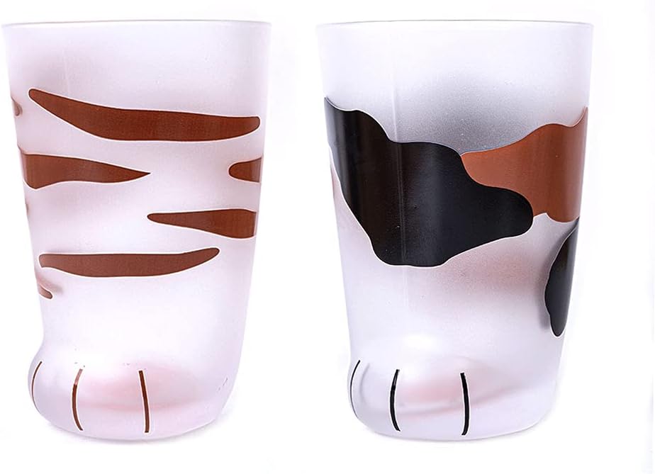 Paquete de 4 tazas de pata de gato, taza de garra de gato, vaso de leche, vaso de vidrio esmerilado, taza con estampado de garra de pie de gato para café, vasos de vidrio de leche para niños, vaso de leche para desayuno con personalidad, taza de leche para desayuno (paquete de 4,