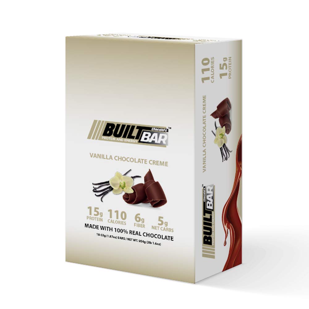 Built Bar 18 Pack Energy and Protein Bars - 100% Real Chocolate - High in Whey Protein and Fiber - Gluten Free, Natural Flavoring, No Preservatives (Vanilla)