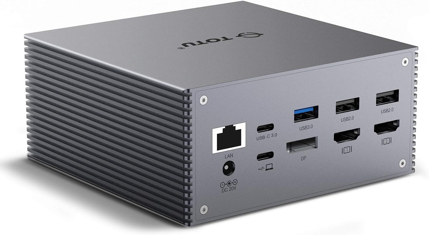 Compatibilidad - La estación de acoplamiento TOTU es compatible con los últimos portátiles con puerto USB C 3.1 GEN 2. Por favor, asegúrese de que el puerto Type C de su portátil soporte DisplayPort y Power Delivery. La estación de acoplamiento TOTU es incompatible con el adaptador USB-A a USB-C.