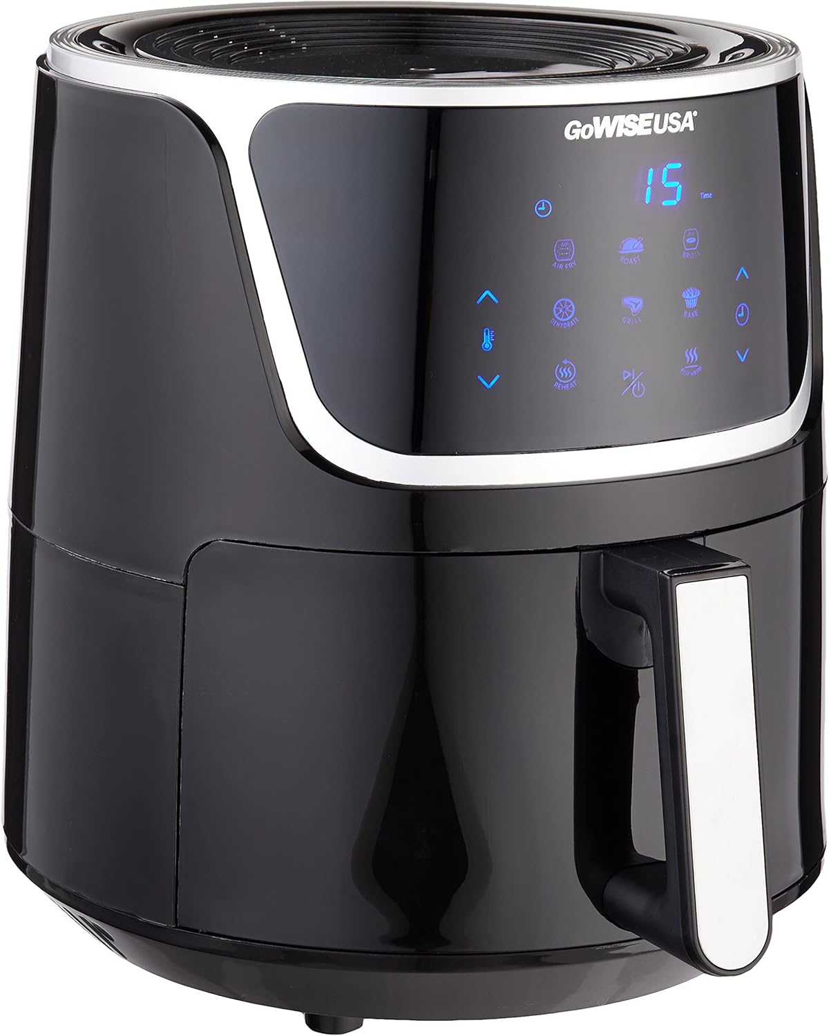 GoWISE USA GW22956 7-Quart Electric Air Fryer with Dehydrator & 3 Stackable Racks, Led Digital Touchscreen with 8 Functions + Recipes, 7.0-Qt, Black/Silver