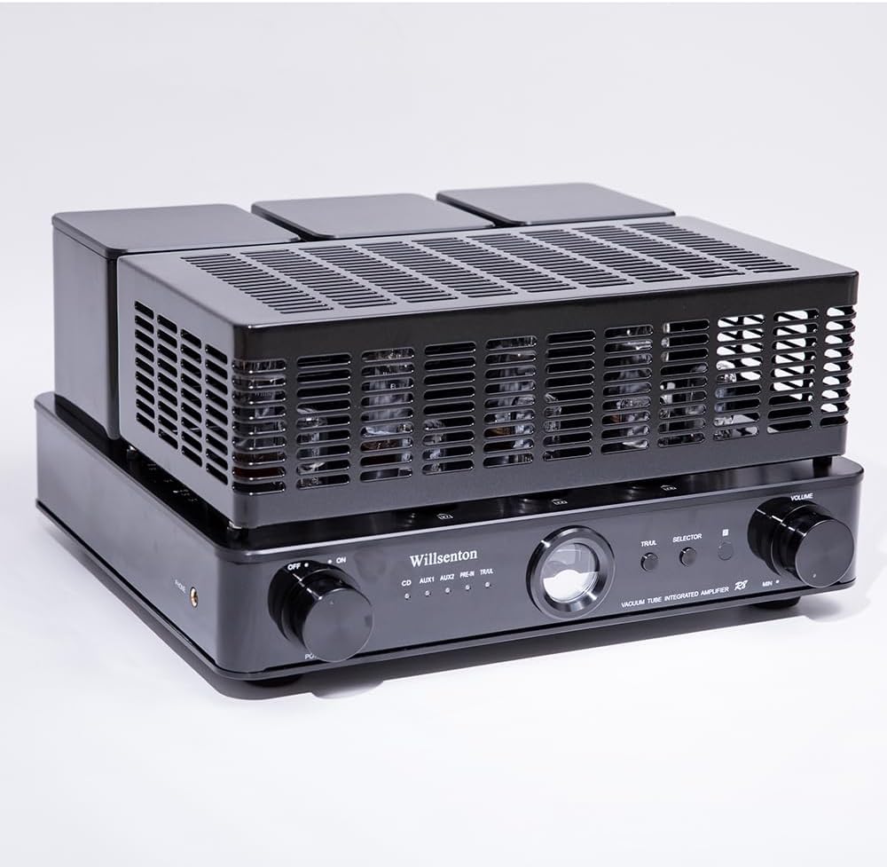 Están disponibles la selección de triodo y ultra-lineal, que pueden cambiarse con el botón en el amplificador. Con control remoto, cubierta protectora de tubo de vacío, fusible y manual en inglés.