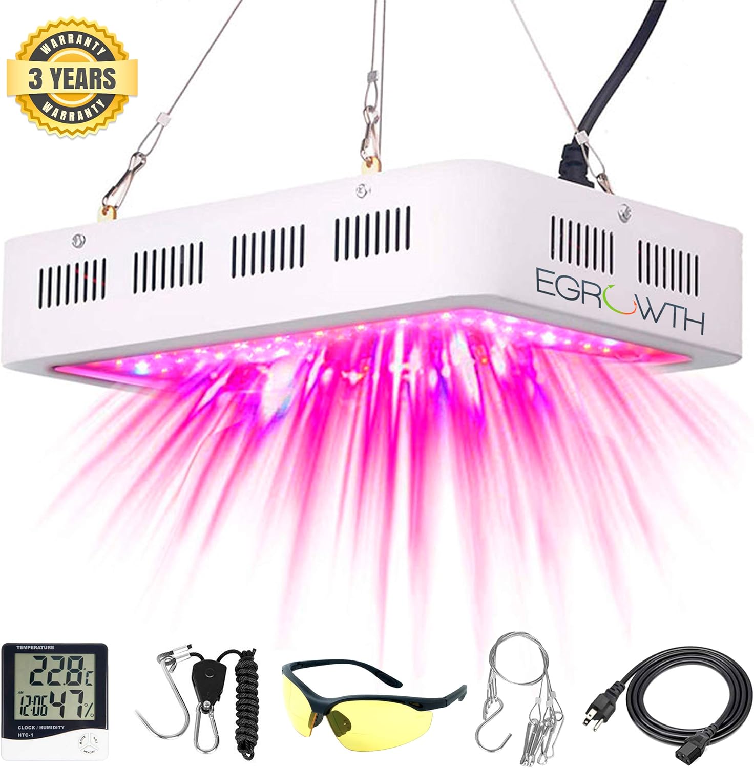 [Egrowth] LED Grow Light Panel 600W Double Switch-Chip -Full Spectrum- Hydroponic with Thermometer Humidity Monitor - Adjustable Rope - UV Potector Glasses + Gift