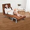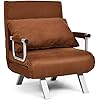 Giantex Convertible Sofa Bed Folding Arm Chair Sleeper with Pillow, Best Chamois Cover-Soft to Touch, 5 Positions Adjustable, 2 in 1 Armrest w/Steel Frame Recliner Padded Lounger Couch Bed (Brown)