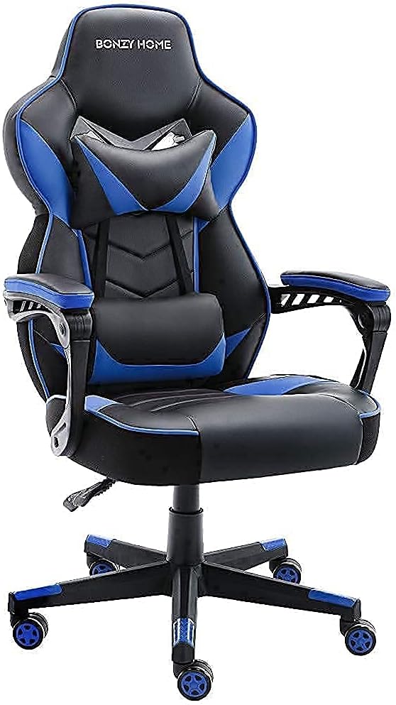 Bonzy Home Gaming Chair Office Chair High Back Computer Chair PU Leather Desk Chair PC Racing Executive Ergonomic Adjustable Swivel Task Chair with Headrest and Lumbar Support (Blue)