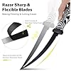Sleek Look & Perfect Length: Black & white zebra-striped handle, black Teflon finish and white sheath make the fillet knife special and chic. Two lengths available, 7” or 9” blade lengths have great flexibility to handle fish in different ways