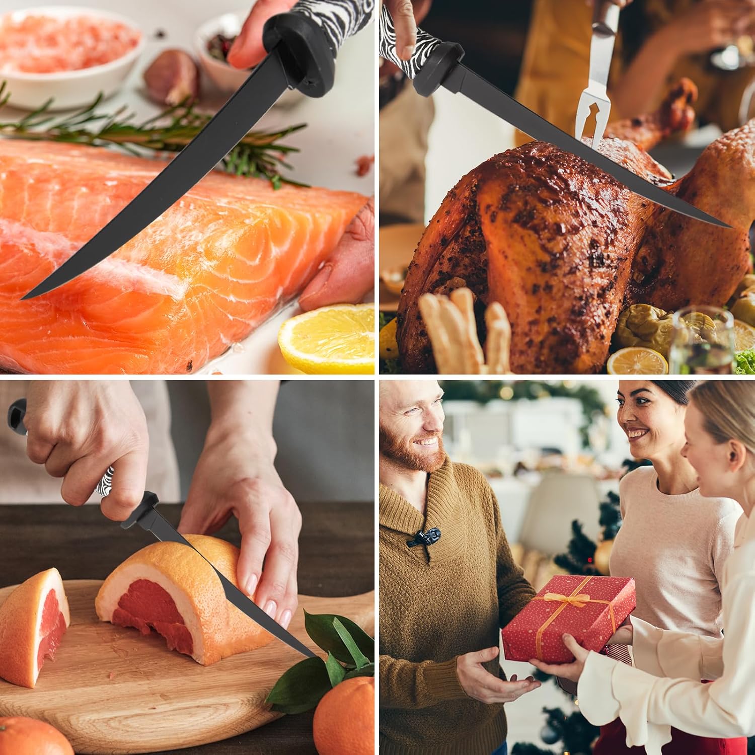 IDEALES PARA PESCAR Y REGALAR: nuestros cuchillos para filetear de primera calidad son perfectos para la pesca en agua dulce y salada. Además, el cuchillo, el afilador y la funda vienen en una hermosa caja, lo que los convierte en el regalo perfecto para hombres, pescadores, papá, novio y esposo en el día del padre, el día de San Valentín, cumpleaños y Navidad, etc.