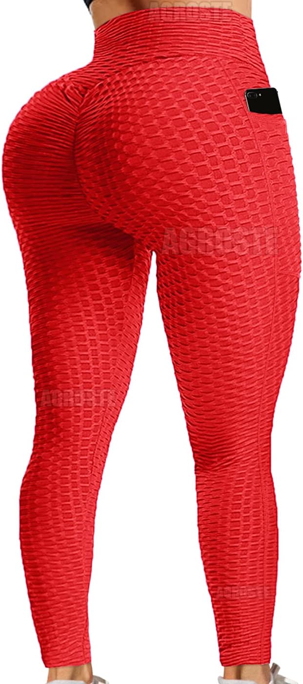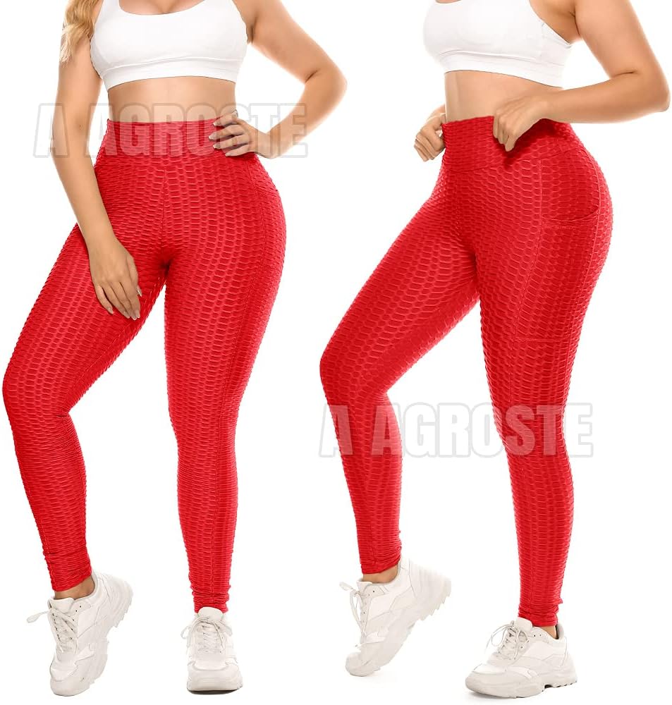 A AGROSTE - Amazon Buyers Trust our A AGROSTE Brand to be Quality Products. A AGROSTE Yoga Pants for women are are made from highest quality top jacquard activewear material, this four-way stretch fabric offers support and wicks away moisture for maximum comfort, designed to contour perfectly to your body, giving you a streamlined look. A wide waistband contours your curves and streamlines your natural shape. Designed to stay put when you stretch and bend, theseyoga pants won't ride up, fall down, or dig in.It is designed to improve the female yoga fitness experience. Yoga leggings can be used in the gym Pilates studio, outdoor sports anddaily leisure places, shift from casual to dressy in minutes. Highlight your favorite accessories and heels, can be used through out the year.According to customers' feedback, now the ruched butt lifting leggings is made of thicker and 4 way stretch material(Spandex/Polyamide). The new textured booty thights is more comfortable and suitable to wear.PROFESSIONAL SIZEJust like the big name "brands", we take 5-6 measurements at precise intervals between the ankle, end of leggings, hip and waist. Multiplemeasurements guarantee our honeycomb ruched butt lifting pants deliver an a natural looking back and precise size. This largely avoids the problems that are common in similar products such as being too long and the waist is too tight. All products are designed for your beautiful figure curve. Features: Shape up Quick dry 4-way stretch Flatlock stitch Moisture tension Ruched butt lifting No overlapping sewing Package Includes: 1 x piece of leggings Care Instructions: Soft blend and flexible machine washable recomended cold to warm water. Wash separately in a delicates bag.Tumble dry low or hang dry. Do not iron. Do not bleach.