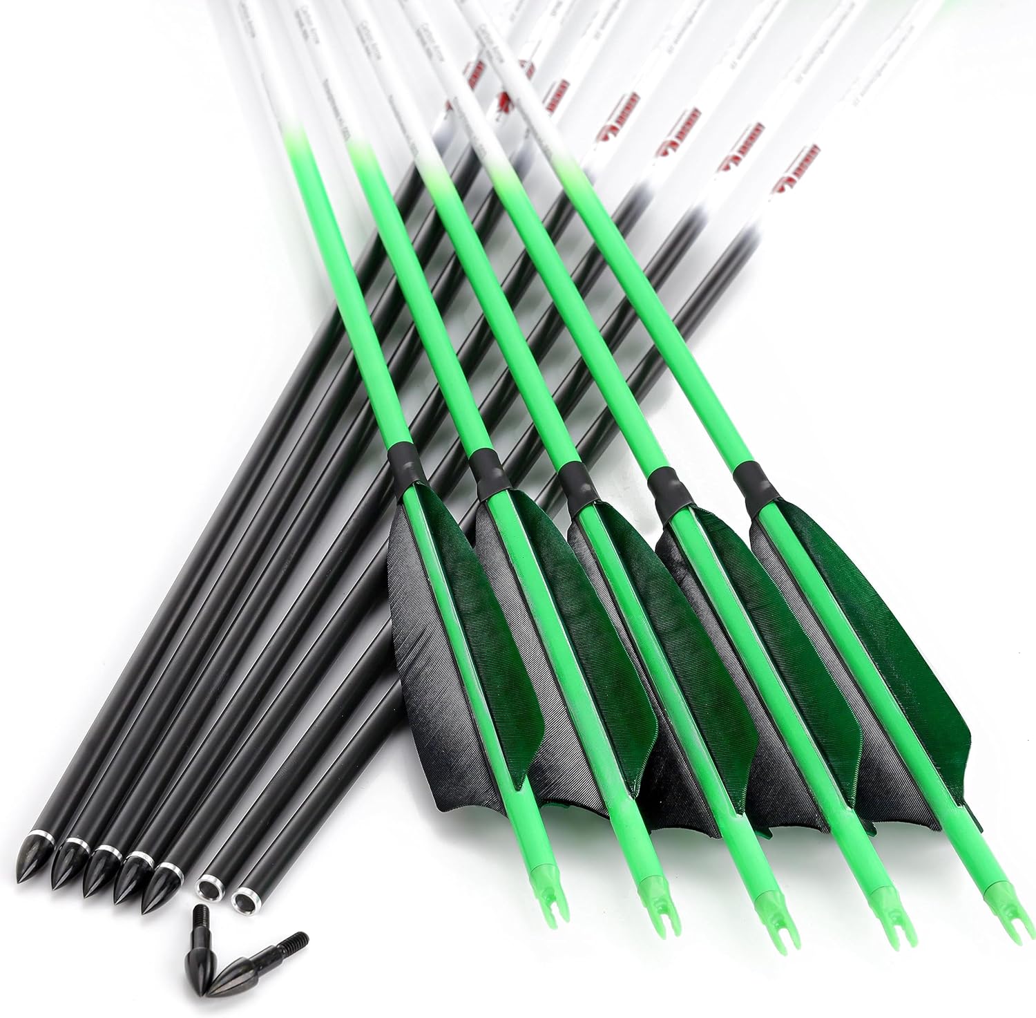 Linkboy Archery Carbon Arrows Hunting Practice Target Arrows Fluorescent with Removable Tip for Compound Recurve Long Bows, Spine 250 300 340 400 500 600 700 800, Pack of 6/12PCS