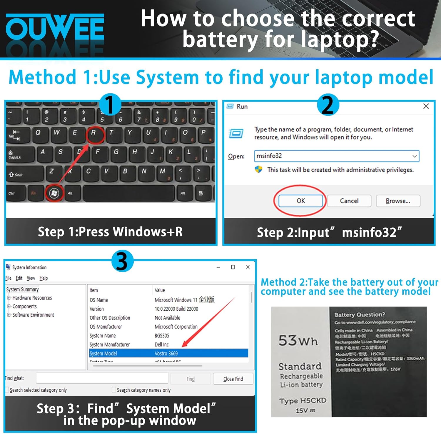【Safe to Use】For inspiron 5406 2-in-1 battery,All OUWEE products are Certified by UL / CE / FCC / RoHS for safety. Strict guidelines for compatibility, strict quality control standards to ensure the true capacity, stable current and low self-discharge and standards compliance for environment safety. We are confident in the performance of the replacement battery.