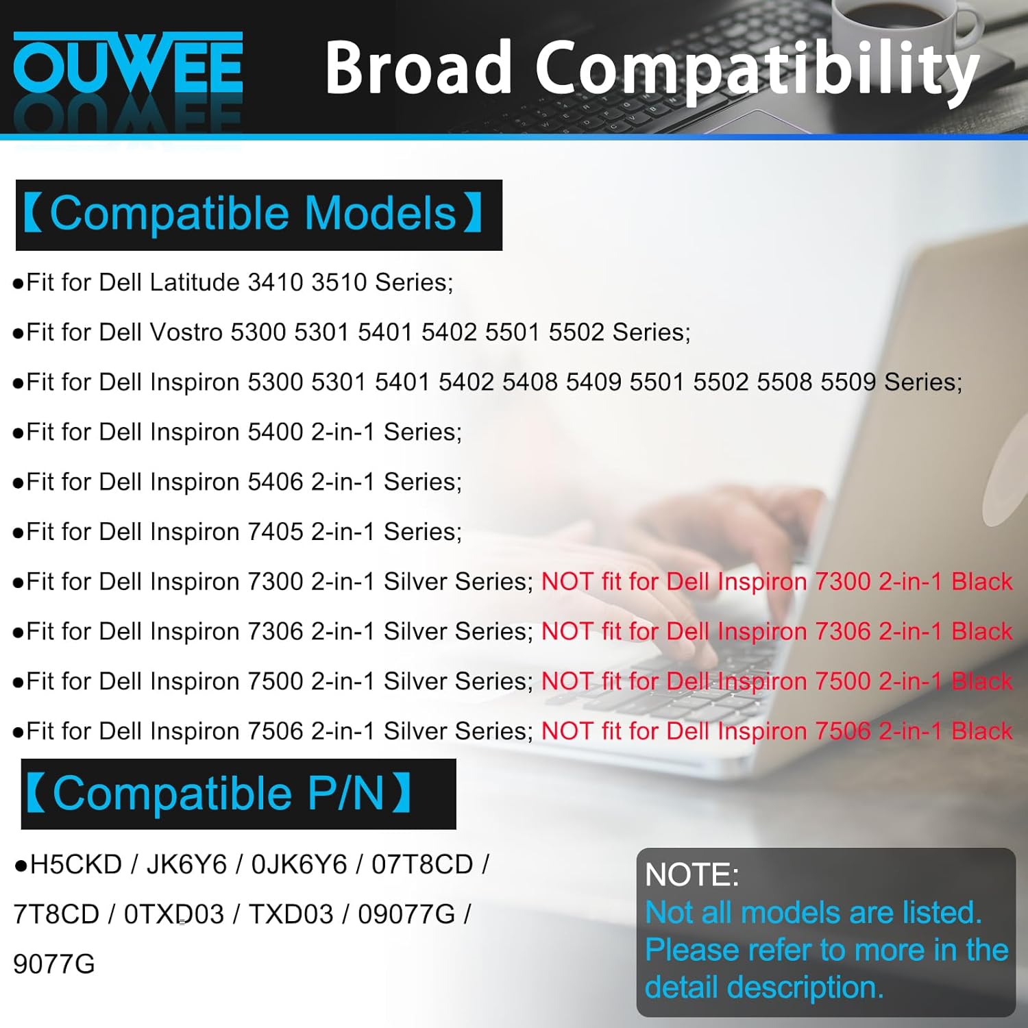 【OUWEE Perfect After-sale】For Dell inspiron 7506 2n1 battery replacement,Rest assured with 30 days money-back and 12 months Warranty;24 x 7 email support. Any questions you can contact with us via "Your Orders" tab in Amazon account. We are committed to resolving any situation in which our product does not meet your expectations.
