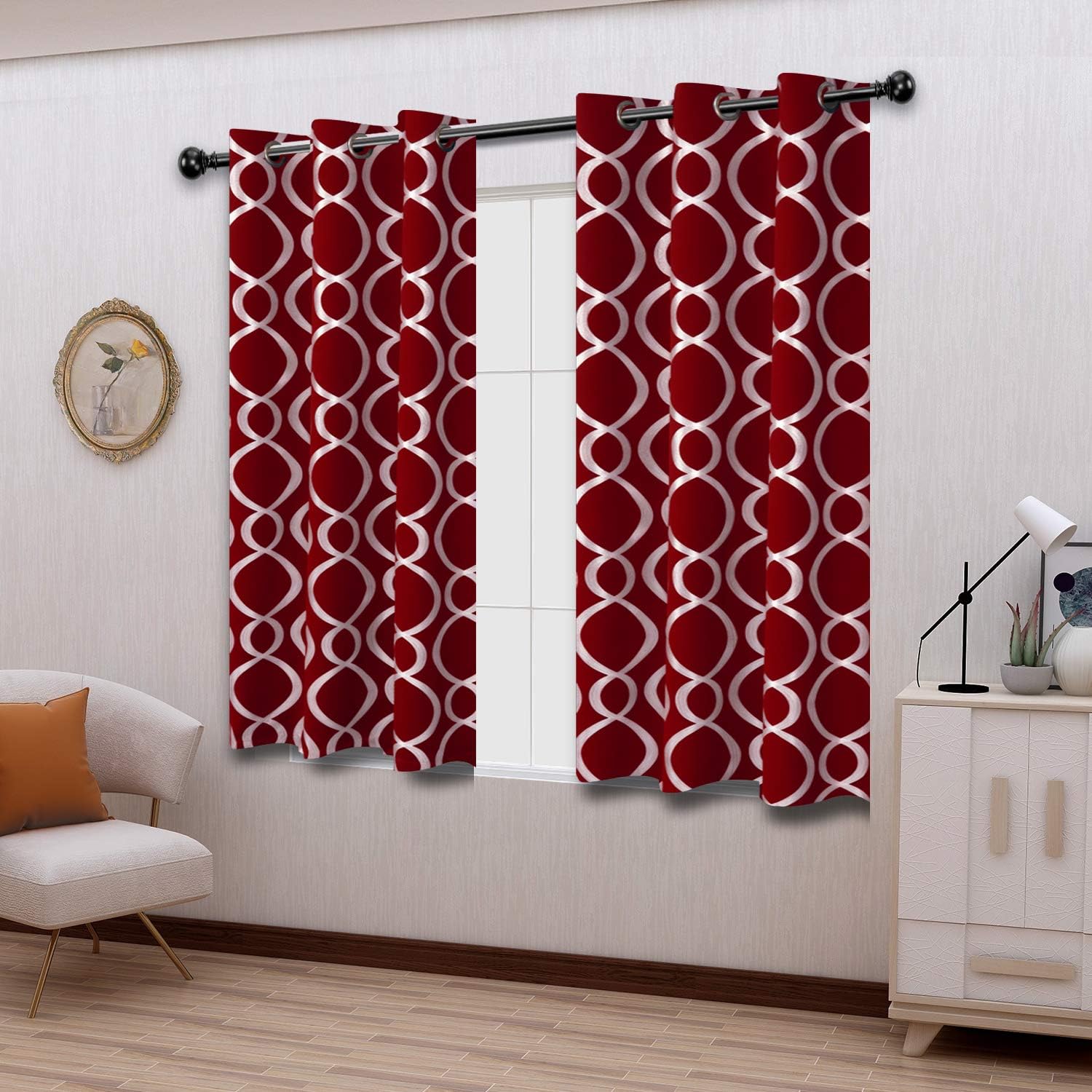 LORDTEX Geometric Foil Print Blackout Curtains for Bedroom and Living Room - Sun Light Blocking, Thermal Insulating Curtain Panels, Grommet Top Window Drapes, Set of 2, Red, 42 x 63 Inches Long