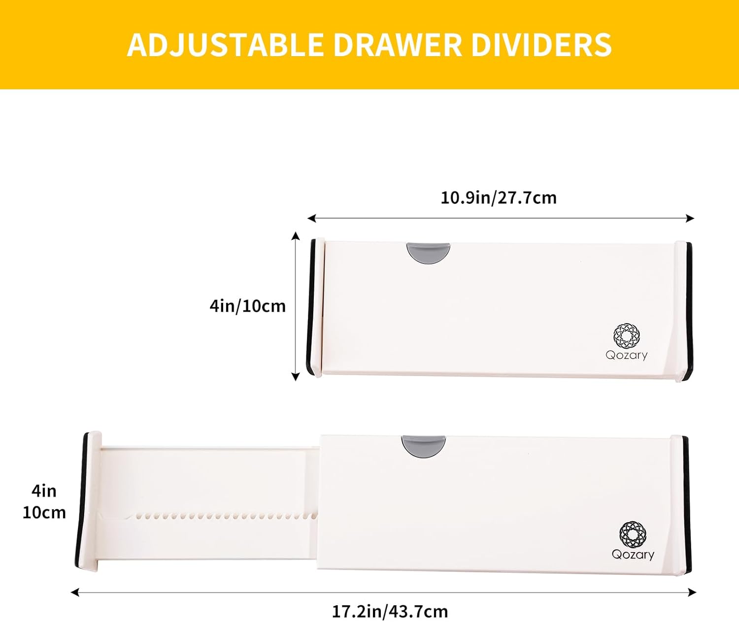 Qozary 8 Pack Adjustable Drawer Dividers Organizer Separators Expandable from 10.9-17.2", Plastic Dresser Organizer for Bedroom, Bathroom, Closet, Baby Drawer, Office Desk, Kitchen Storage