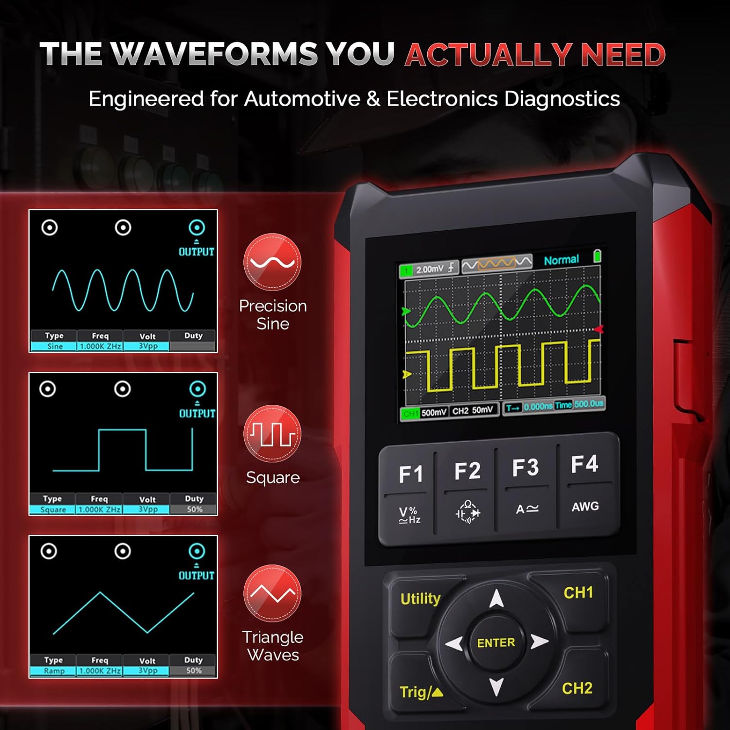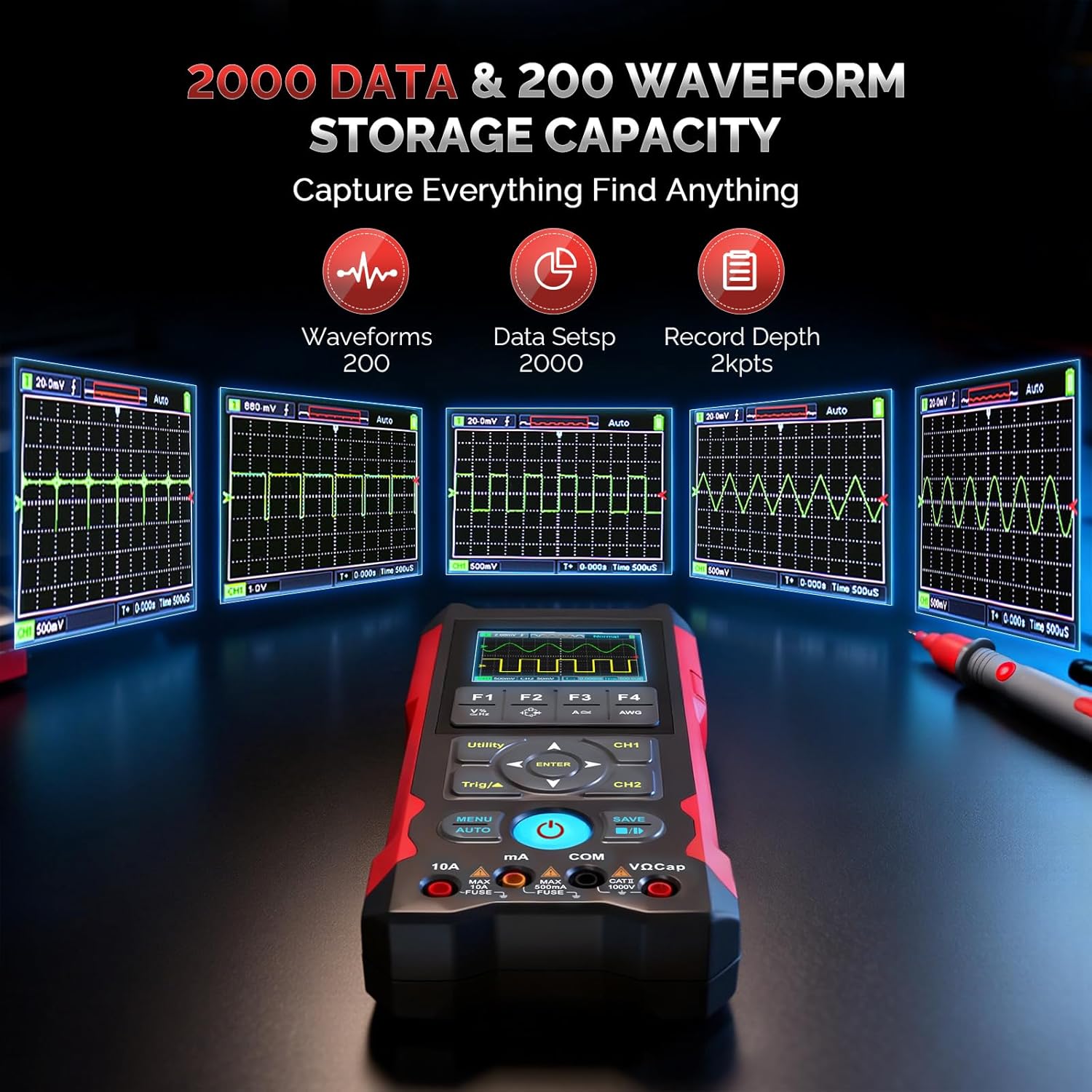 Osciloscopio Multimetro de Mano 3 en 1 Profesional, Osciloscopio Multimetro con Función de Captura Automática de Forma de Onda de Alta Muestreo