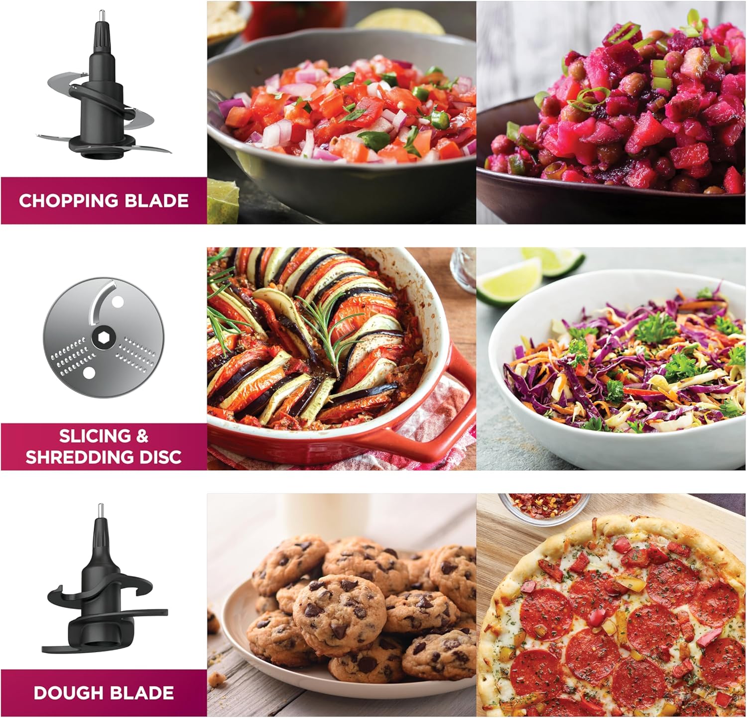 CUCHILLAS DE PRECISIÓN: Incluye cuchillas de acero inoxidable de precisión diseñadas para un rendimiento óptimo, asegurando un picado, rebanado y puré uniforme de todos tus ingredientes.