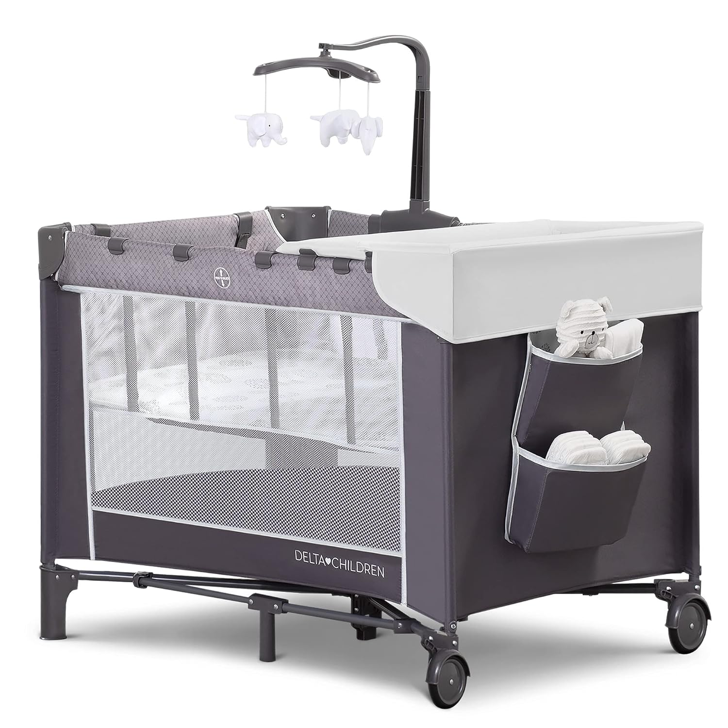 Delta Children LX Deluxe Portable Baby Play Yard With Removable Bassinet and Changing Table, Eclipse