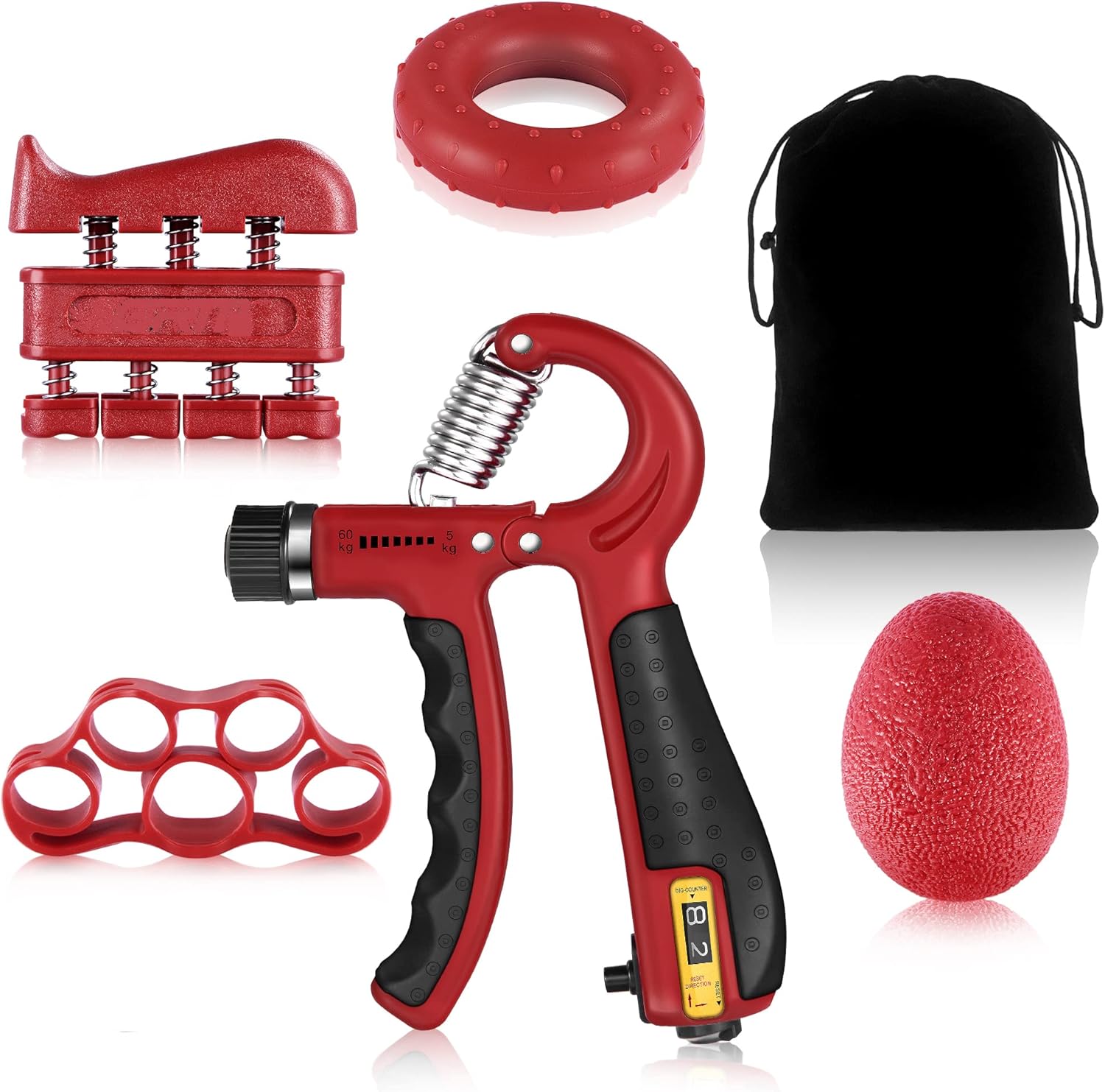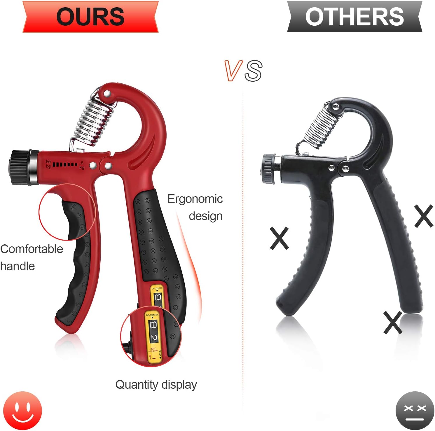 Gonex Hand Grip Strengthener with Counter, Forearm Trainer Workout Kit(Red), Adjustable Resistance Grip Strength Trainer, Finger Exerciser/Stretcher, Grip Ring, Stress Relief Grip Ball