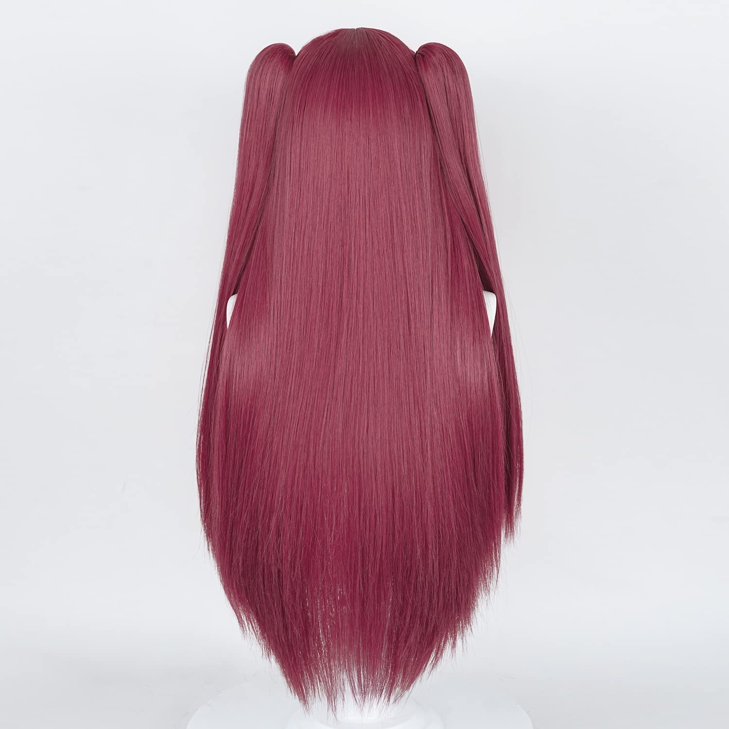 Alacos Red Ponytail Wig with Bangs, Red Long Straight Anime Wigs for Costume Cosplay, Cosplay Wigs for Women Party Show