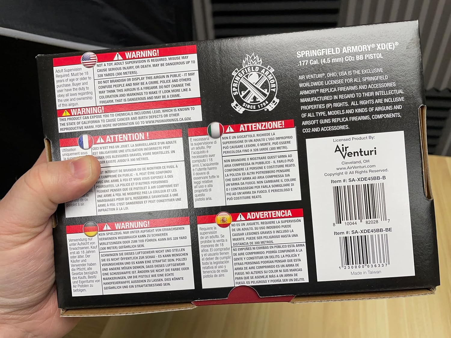 PISTOLA DE AIRE COMPRIMIDO CO2: La pistola BB XDE de 4,5 pulgadas es una versión clásica del modelo de acero auténtico. Con un calibre .177 y una longitud de cañón de 4,3 pulgadas, esta pistola de aire comprimido de CO2 de doble acción tiene una corredera de retroceso que produce una patada realista.