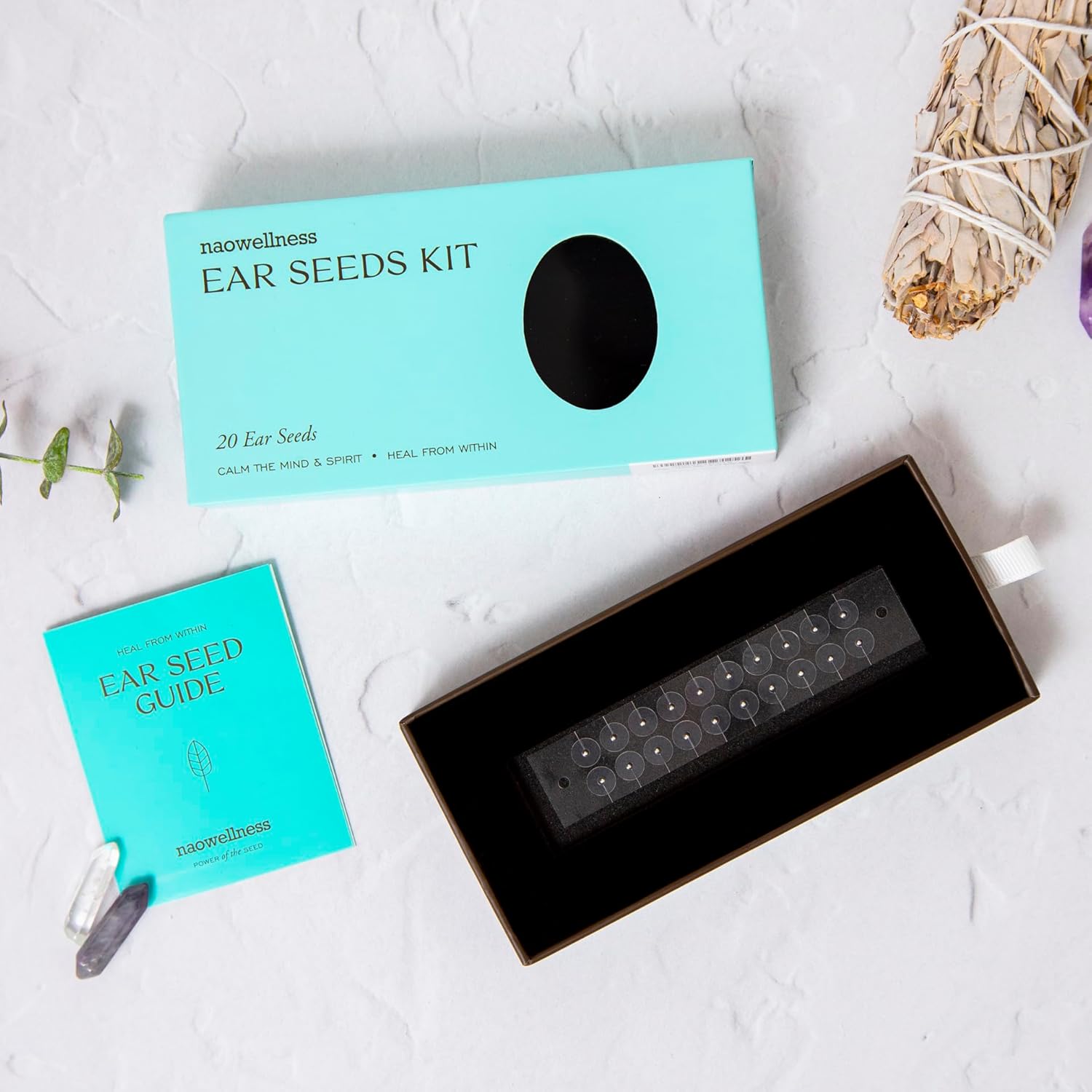 NAO Wellness Stainless Steel Ear Seeds - Auriculotherapy Seeds Self-Care Acupressure Beads with 40+ Solutions – 20 Ear Seeds Acupuncture Kit – Suitable for Adults and Kids of Any Age