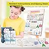 Contiene moldes de resina alfabética de silicona, resina epóxica de 14oz, polvo de mica, láminas de aluminio dorado, brillos finos, borlas para llaveros, llaveros, anillos saltadores, ojos de pinza, juego de pin vis y hoja de instrucciones para la artesanía en resina