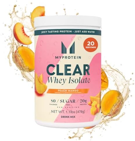 Myprotein Clear Whey Isolate Protein Powder, 1.1 Lb (20 Servings) Peach Mango, 20g Protein per Serving, Naturally Flavored Drink Mix, Daily Protein Intake for Superior Performance