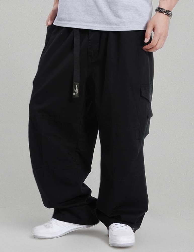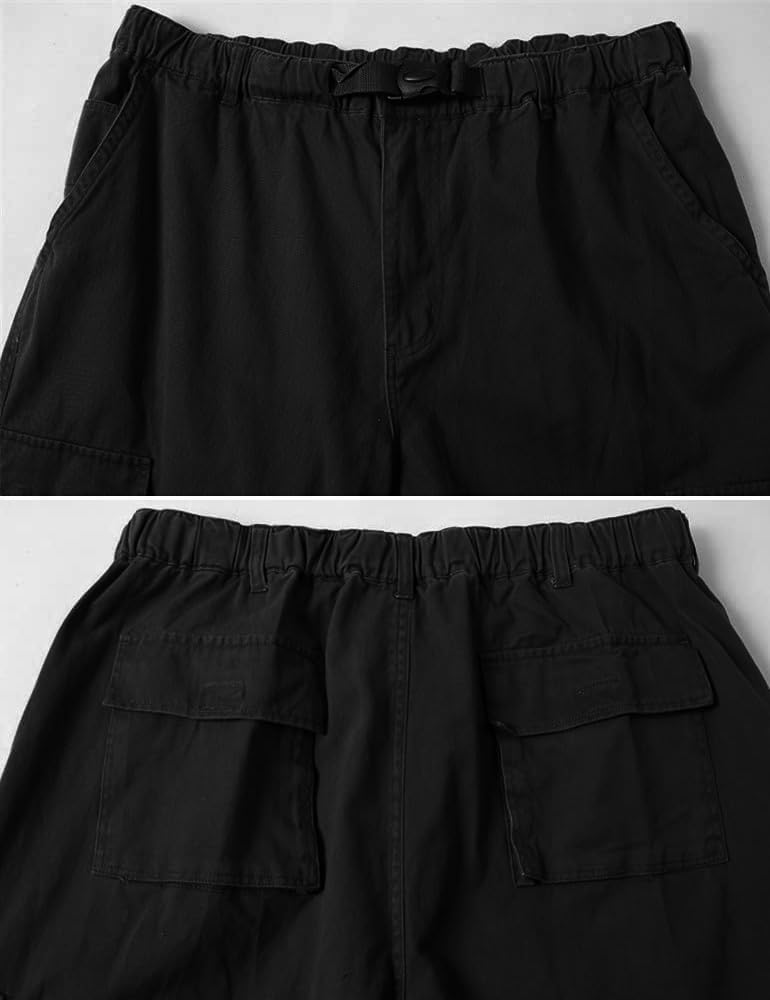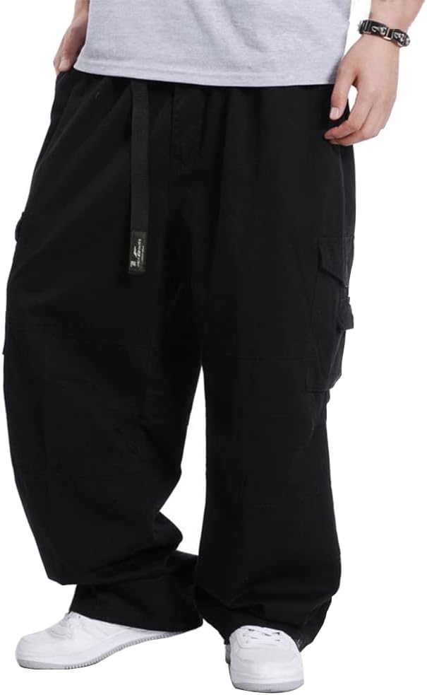 Kinghua Mens Baggy Cargo Pants Casual Loose Fit Elastic Waist Cotton Twill Cargo Pants