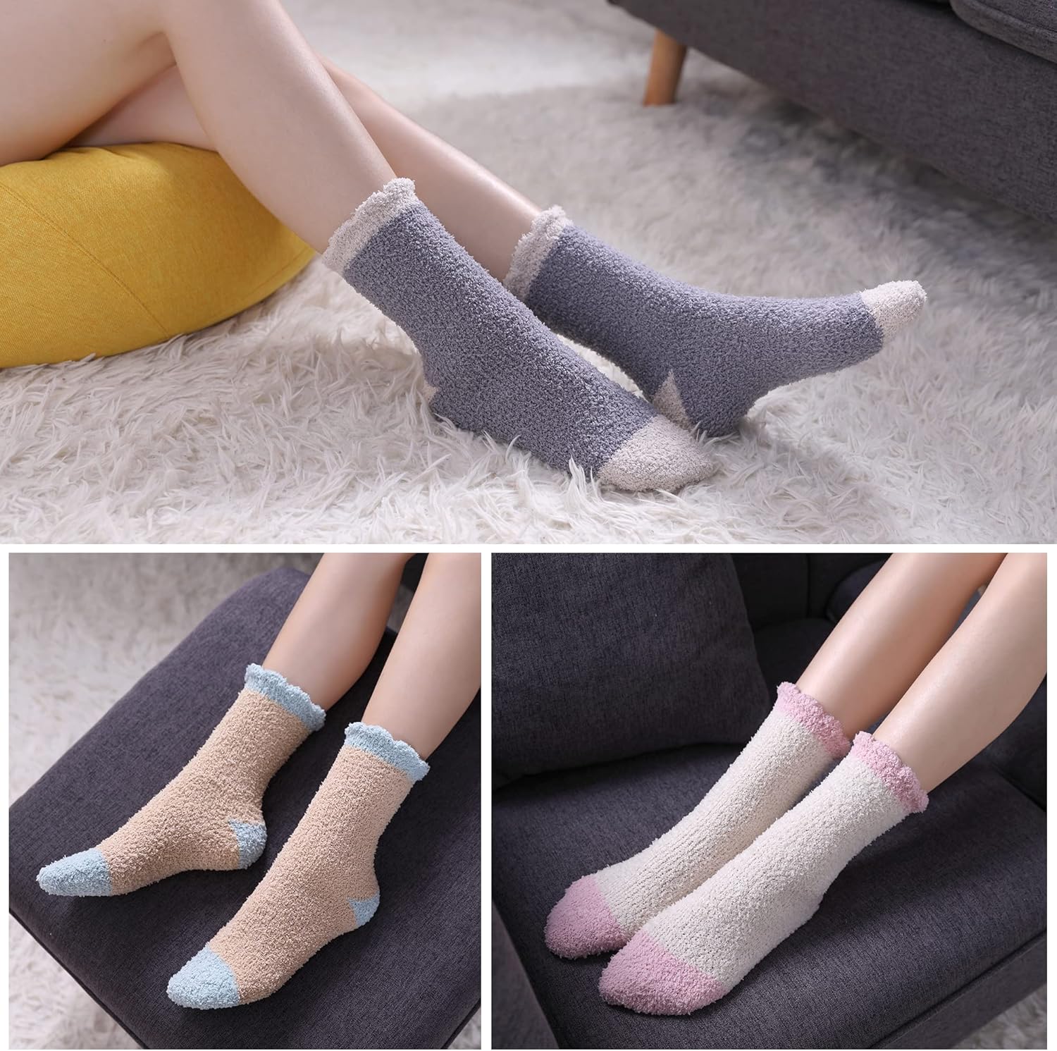 MQELONG Womens Super Soft Fuzzy Cozy Home Sleeping Socks Microfiber Winter Warm Slipper Socks