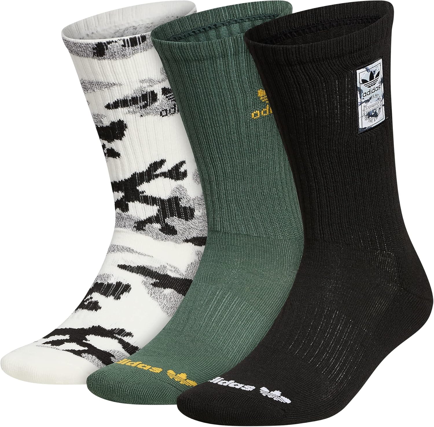 adidas Originals Calcetines Acolchados de Manga Larga con Gráficos Mixtos (3 Pares), Negro/Chalk White/Oxido Verde, Grande