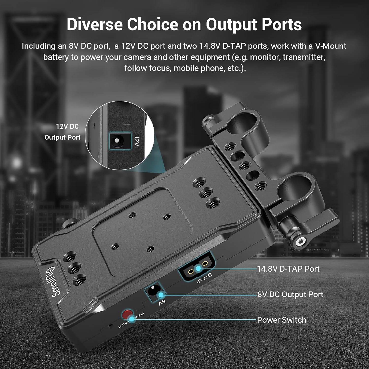 Versatile Power Outputs: Featuring dual D-Tap output ports and DC output ports, this adapter plate offers unparalleled versatility in powering multiple accessories simultaneously. Whether it's your camera, monitor, transmitter, or mobile phone, this adapter plate provides reliable power to keep your entire setup running smoothly.