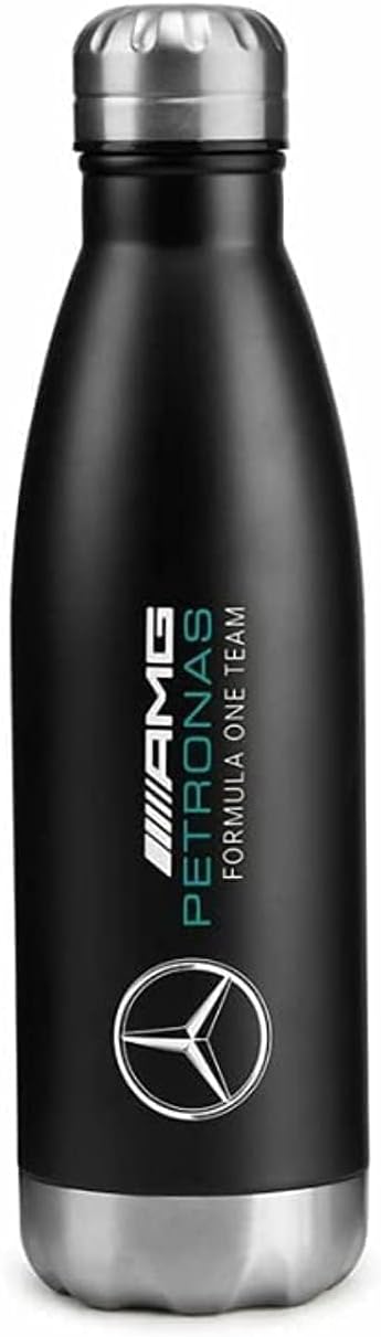 MERCEDES BENZ AMG PETRONAS F1 Water Bottle Material: 100% Brushed Stainless Steel. Printed team logo on side of bottle. Removable screw cap. Licensed Mercedes-AMG PETRONAS F1 Water Bottle, part of the official merchandise collection