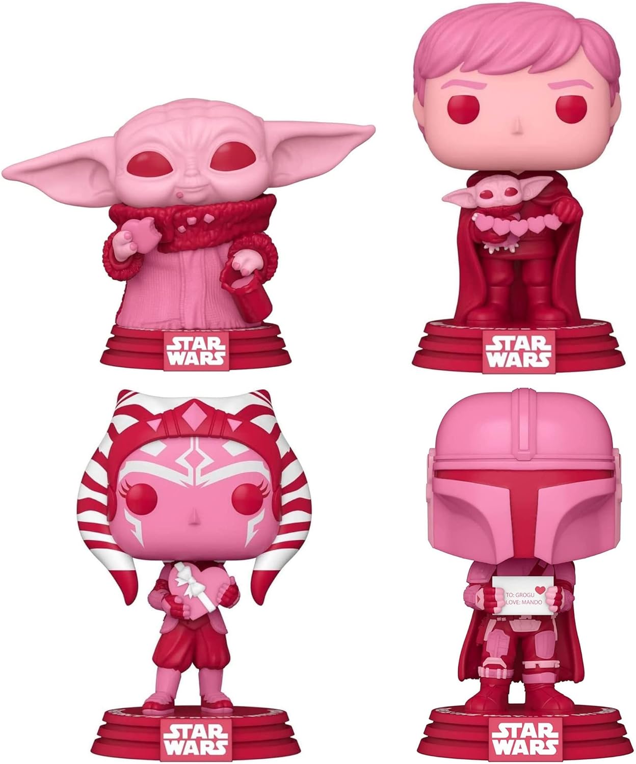 Funko POP Valentines Star Wars Collectors Set - Luke & Grogu, Mandalorian, Ahsoka, Grogu, Figures Stand 3.75" Tall, Each Figure Comes Individually Packaged