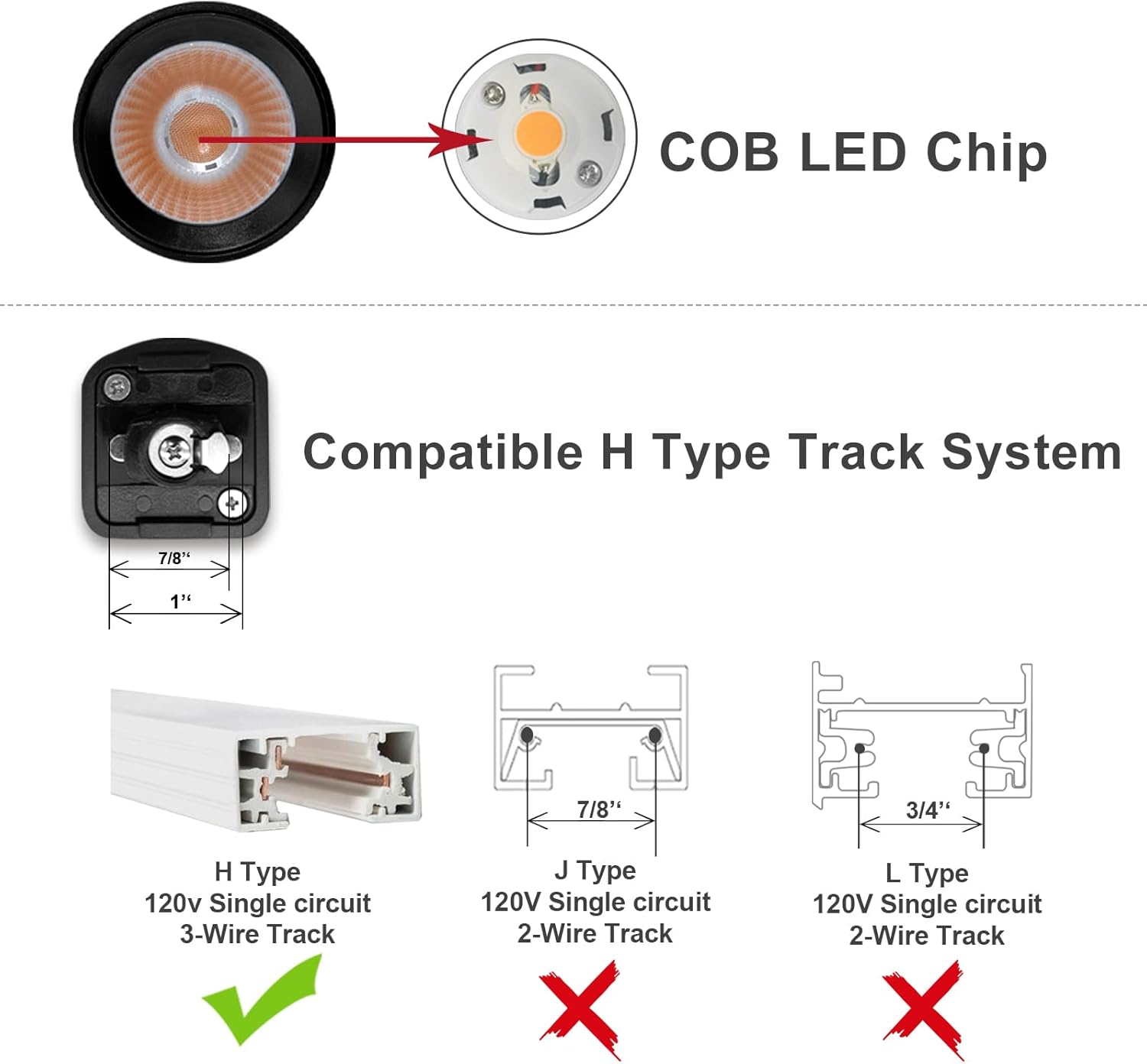 💡【H Track system】: This ETL LED track lighting heads compatible with 3-wire single-circuit H-type track. Not fit for Juno or L type track rails.