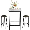Pub Table Set of 3, Small Dining Table for 2, Bistro Table and Chairs, Bar Height Table w/2 Stools Counter Height Table Kitchen Bar Small Kitchen Table for Breakfast Nook Small Space