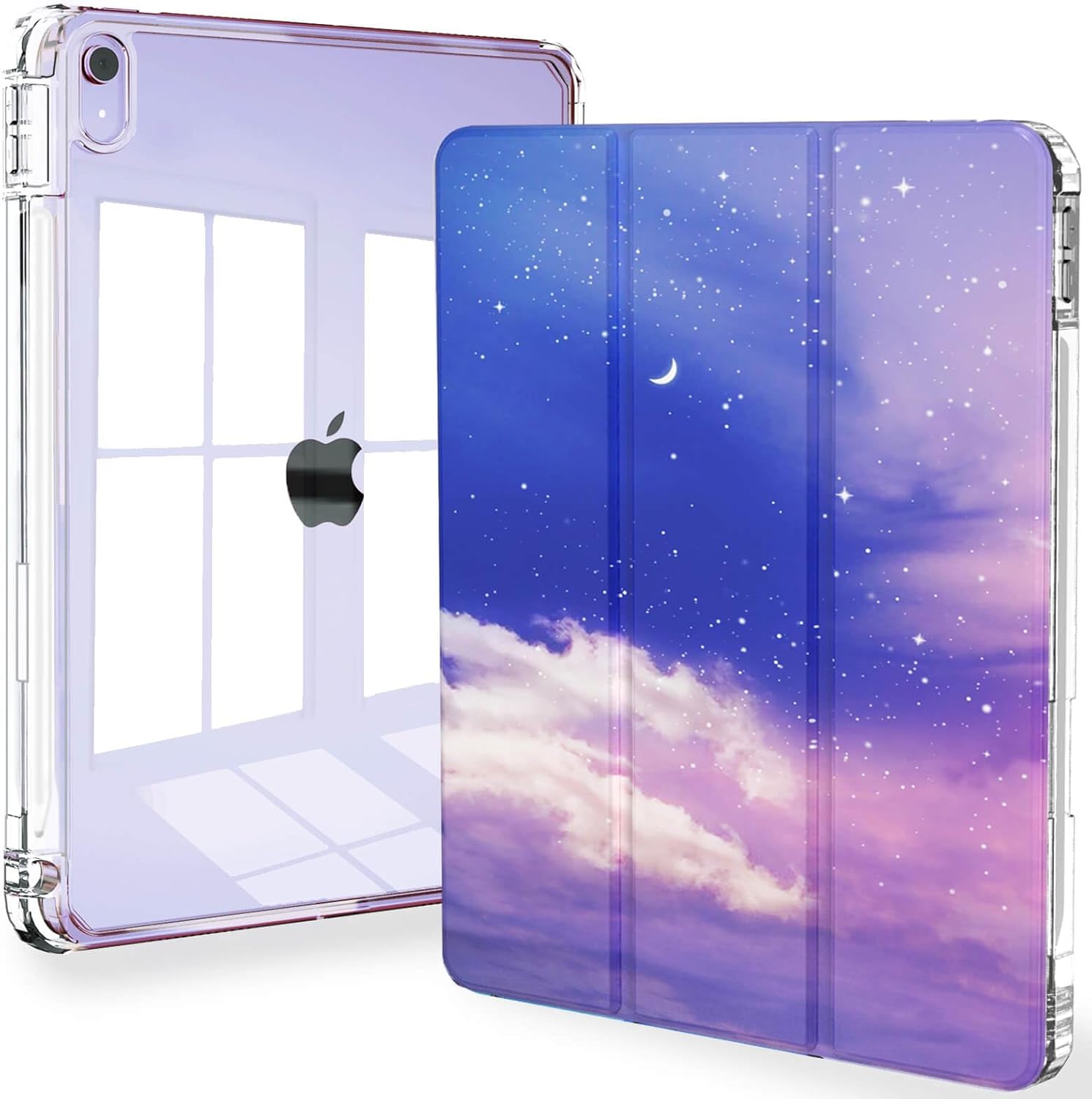 Feams Slim Case for iPad Air 11-inch M3 2025 / M2 2024, iPad Air 5th Generation 2022 / iPad Air 4th Generation 2020 10.9 Inch Case Clear Back with Pencil Holder & Auto Sleep, Purple Sky