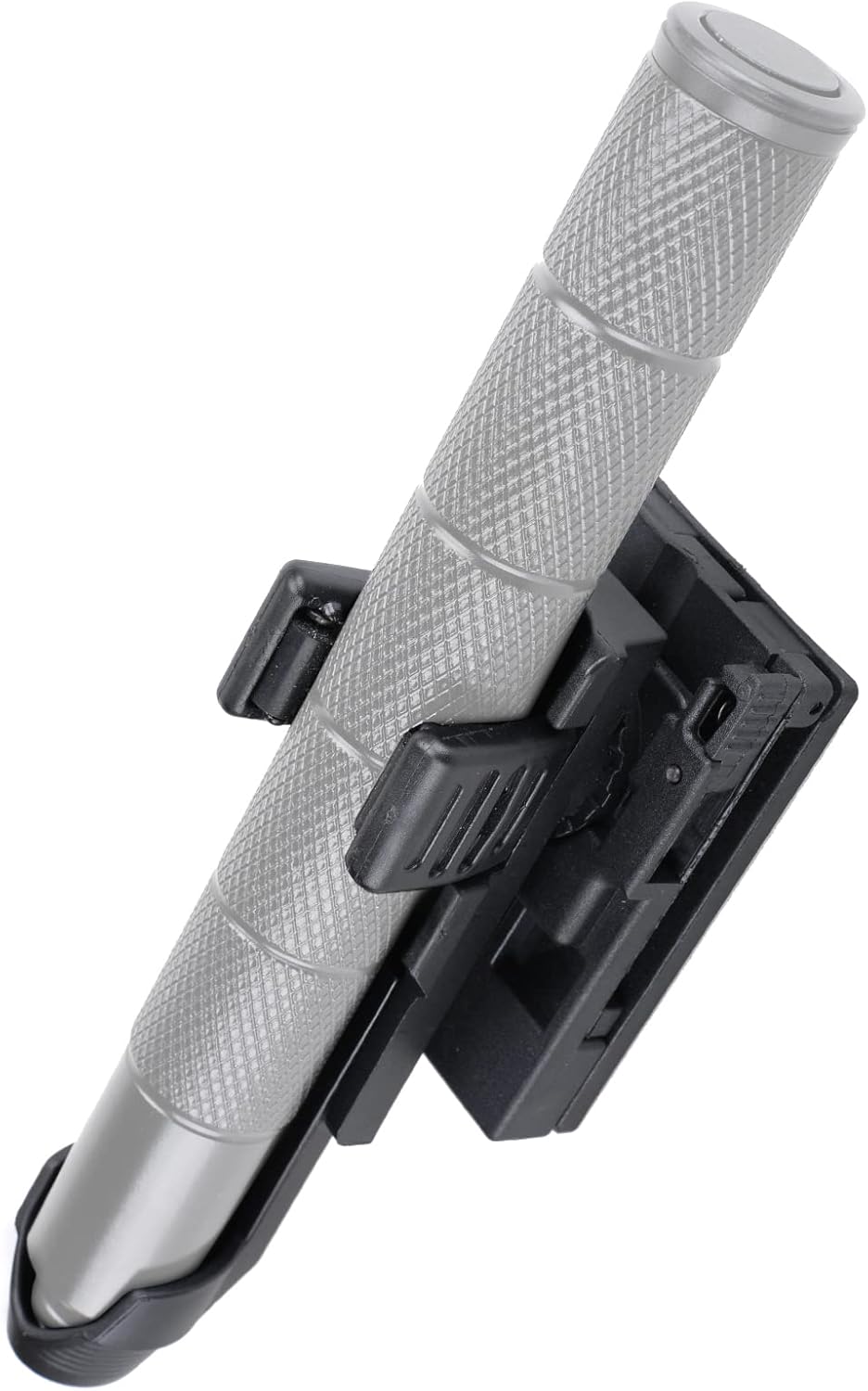 Quick Locking Mechanism: Baton Holder(Baton Not Included)engages the Quick-Cam locking mechanism to ensure a tight and secure fit, preventing the spontaneous release, dislodging, or dropping of the baton. It has a springy gripper that can grip the baton automatically and firmly and allow the width from 0.7" to 1.14" (1.8 cm to 2.9 cm) diameter.