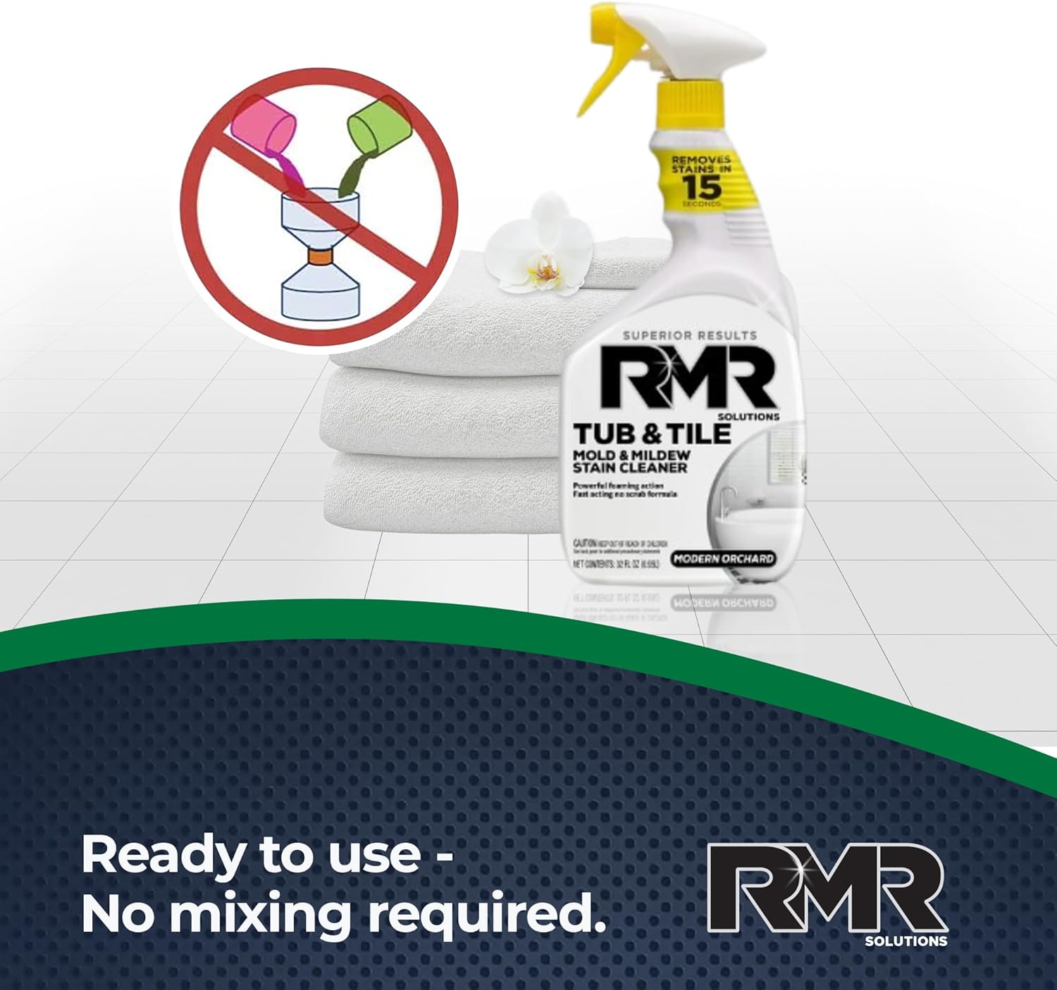 RMR - Tub and Tile Cleaner, Mold & Mildew Stain Remover, Industrial-Strength, No-Scrub Foam Cleaner, Modern Orchard Scent, 32 Fl Oz