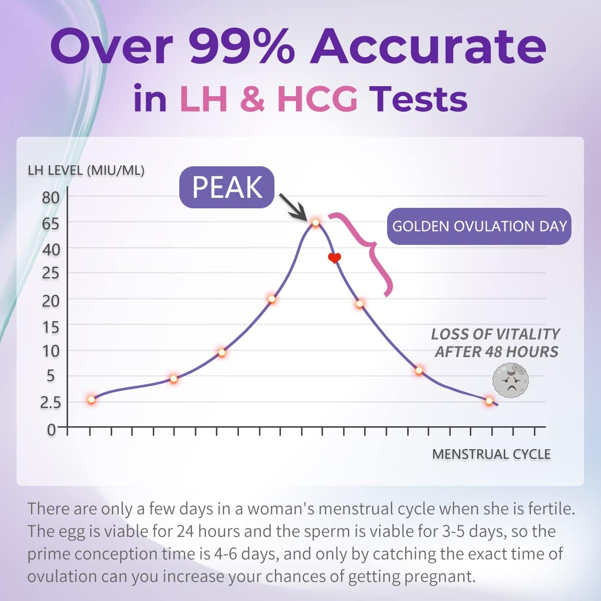 Accurate Testing: The DAVID fertility test with an accuracy of over 99% gives you a confident confidence. The sensitivity of the ovulation tests is 25 mIU/ml and test can be started as early as the first day after the end of your menstrual cycle after confirming your cycle length. The sensitivity of the early pregnancy tests is 10 mIU/ml and it is recommended to start test 6 days before the missed period