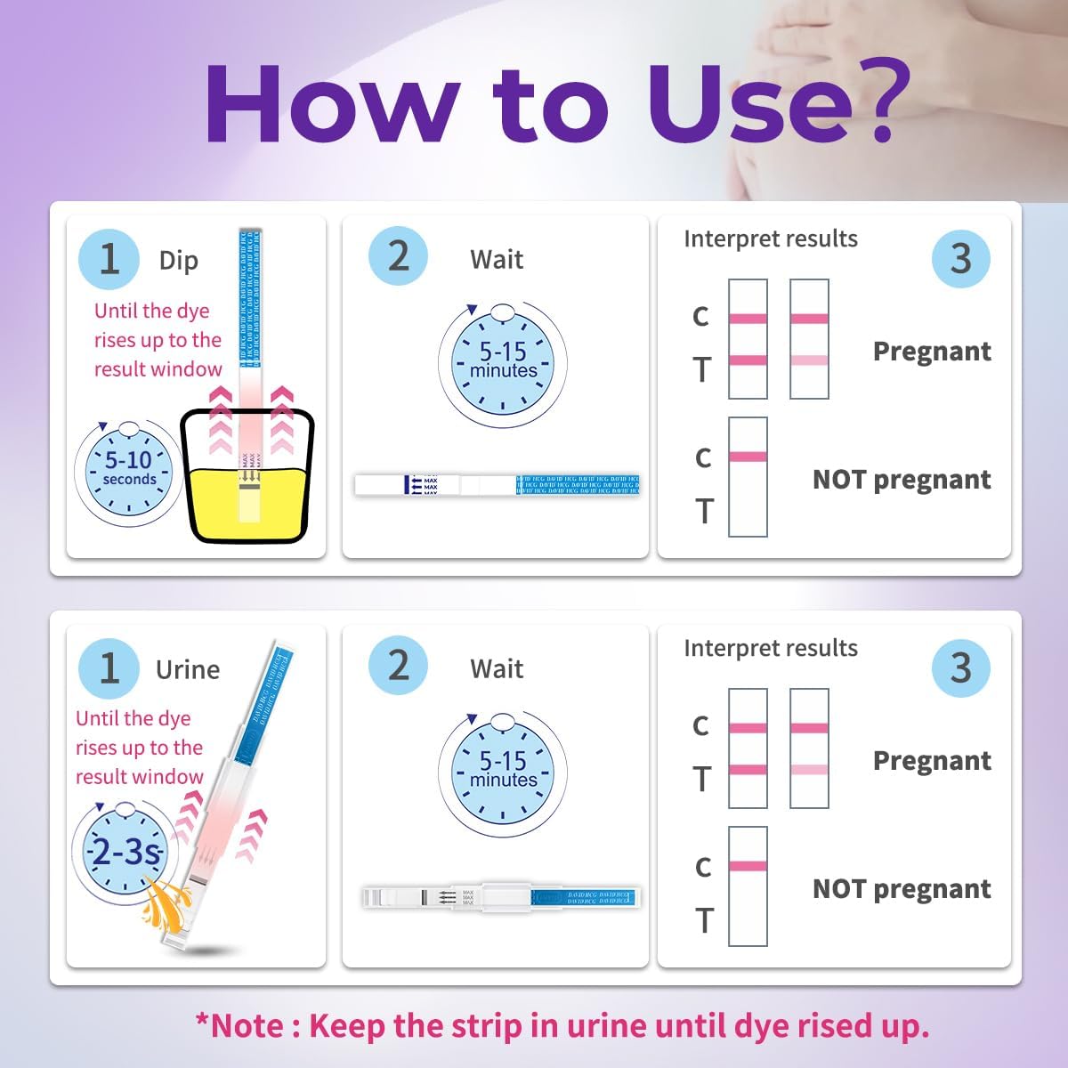 Easy to Use & Read: 5mm wide test strips for easy handling and reading. Simply dip the test into the urine until the dye rises into the result window (approximately 3-10 seconds). Ovulation tests: a test line as dark or darker than the control line indicates a positive result. Pregnancy tests: two lines means pregnant and one line means not pregnant