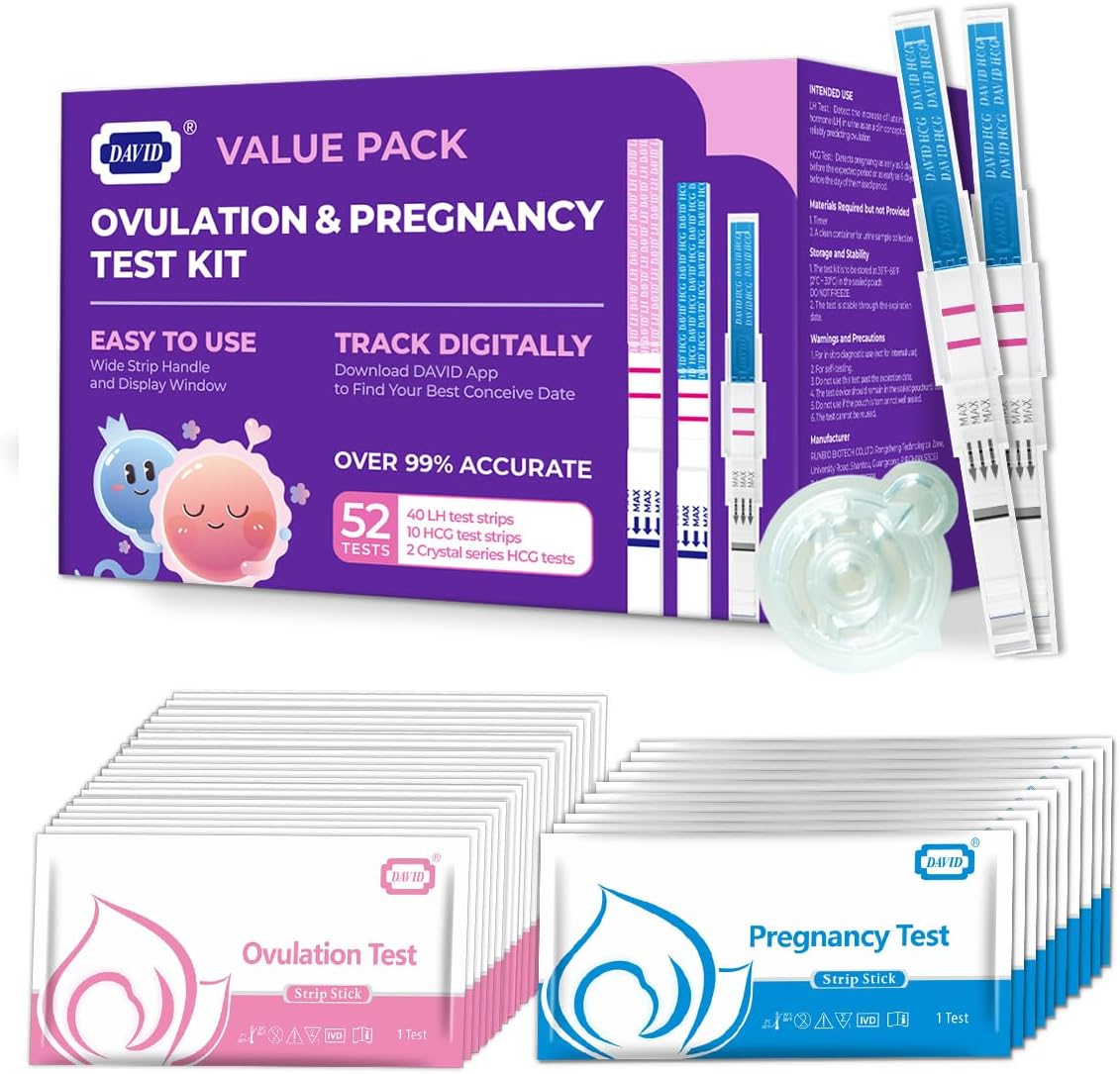 Improve Your Pregnancy Chances: DAVID ovulation and pregnancy test kit helps you make a small miracle happen, by tracking ovulation and finding your fertile window, you’ll know exactly the best time to get pregnant. This value pack includes 40 Ovulation Test Strips, 10 Pregnancy Test Strips and 2 Crystal Sticks