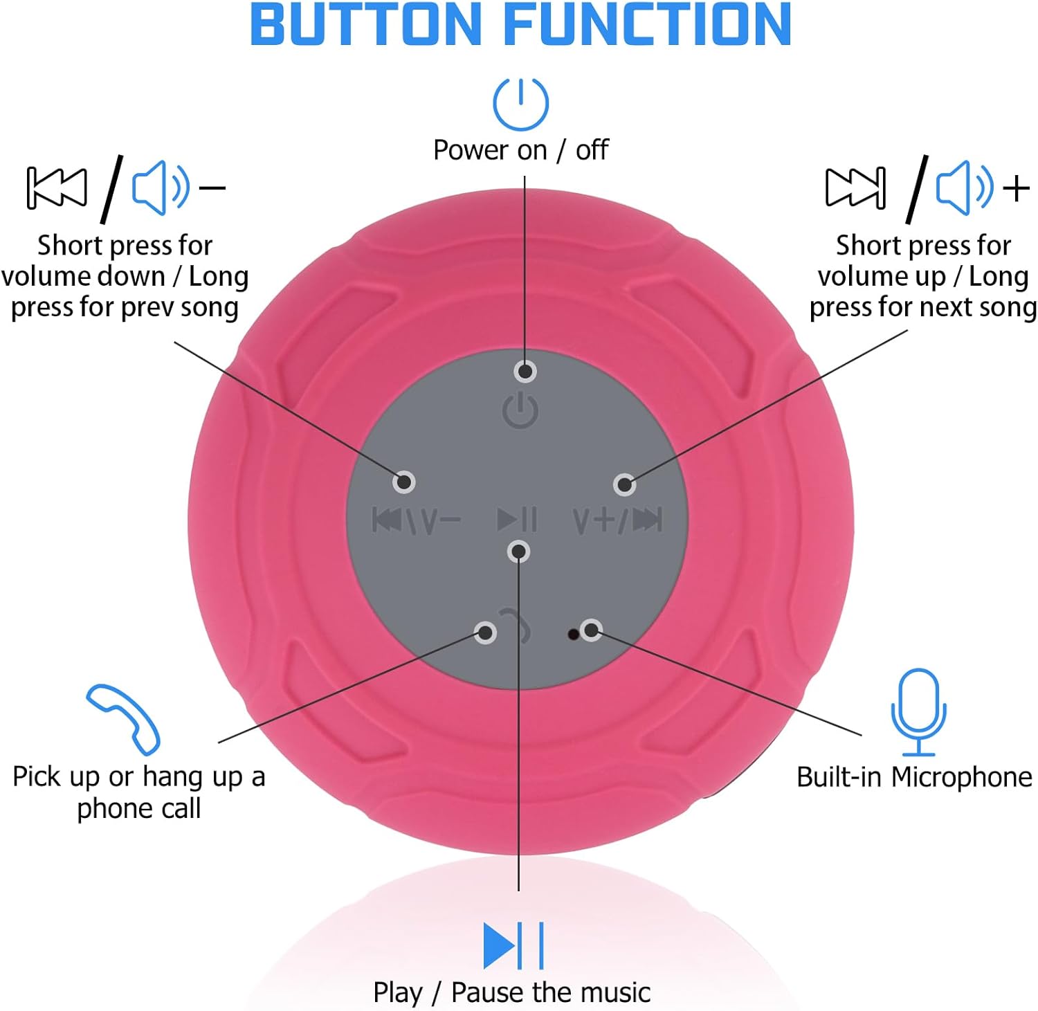 Portable Bluetooth Shower Speaker - Don't let the water stop you from enjoying your favorite music. Allow you to use it at any where or any time you like (In bathroom, kitchen,beach, swimming pool, wash room, on boat.)