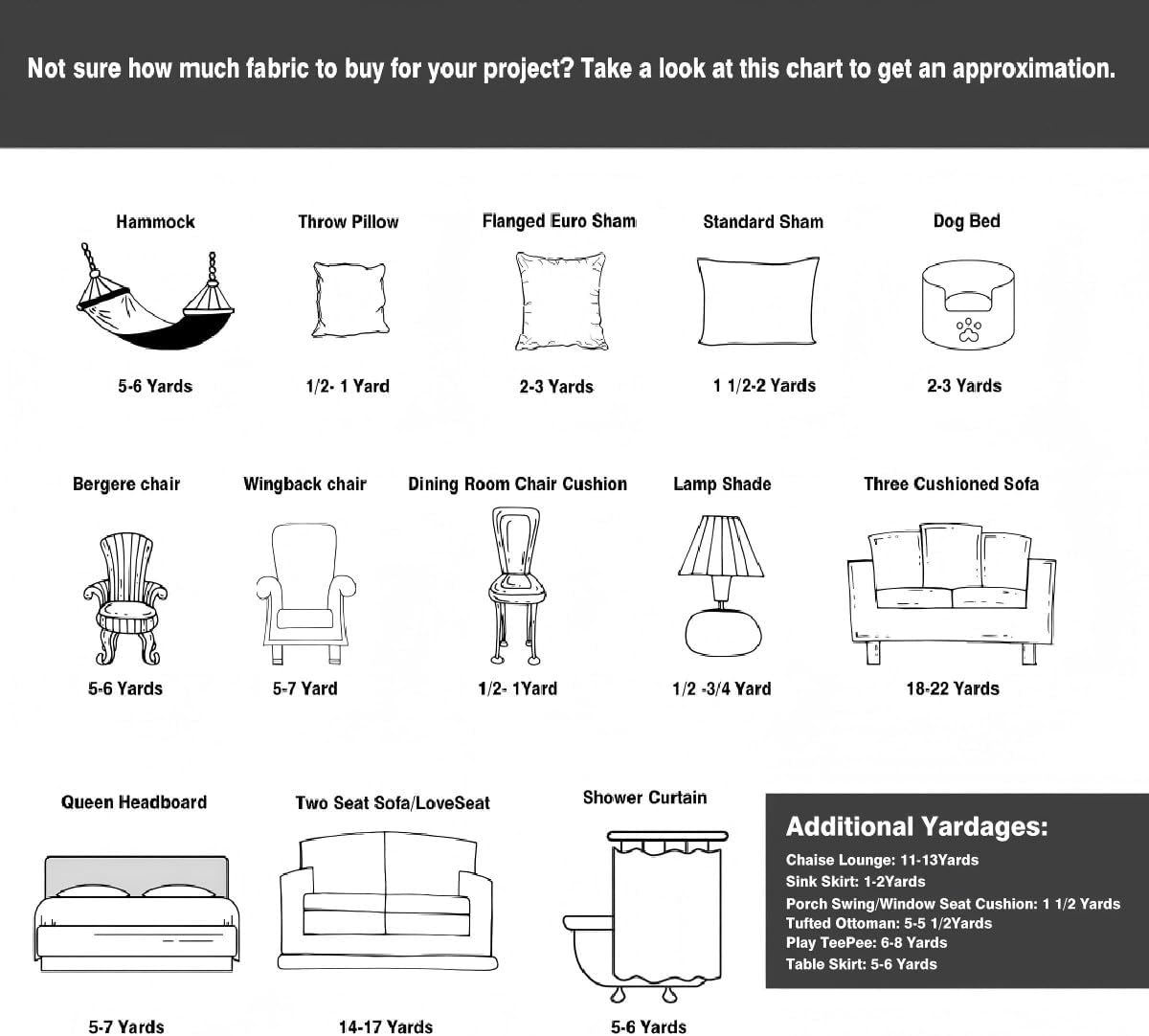 One piece of fabric: 5 Yards Fabric Length 180" Width 59". Every 1 quantity equals to 5 yards. Each qty is cut in separate pieces as a continuous 5 yards of fabric each.