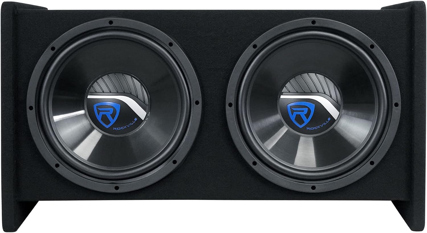 Rockville RV1212P Dual 12" 1200W Car Audio Subwoofers in Vented Enclosure, 4-Ohm, Clean Punchy Bass, 600W RMS Music Rating, Durable MDF Build, for Car Audio Systems