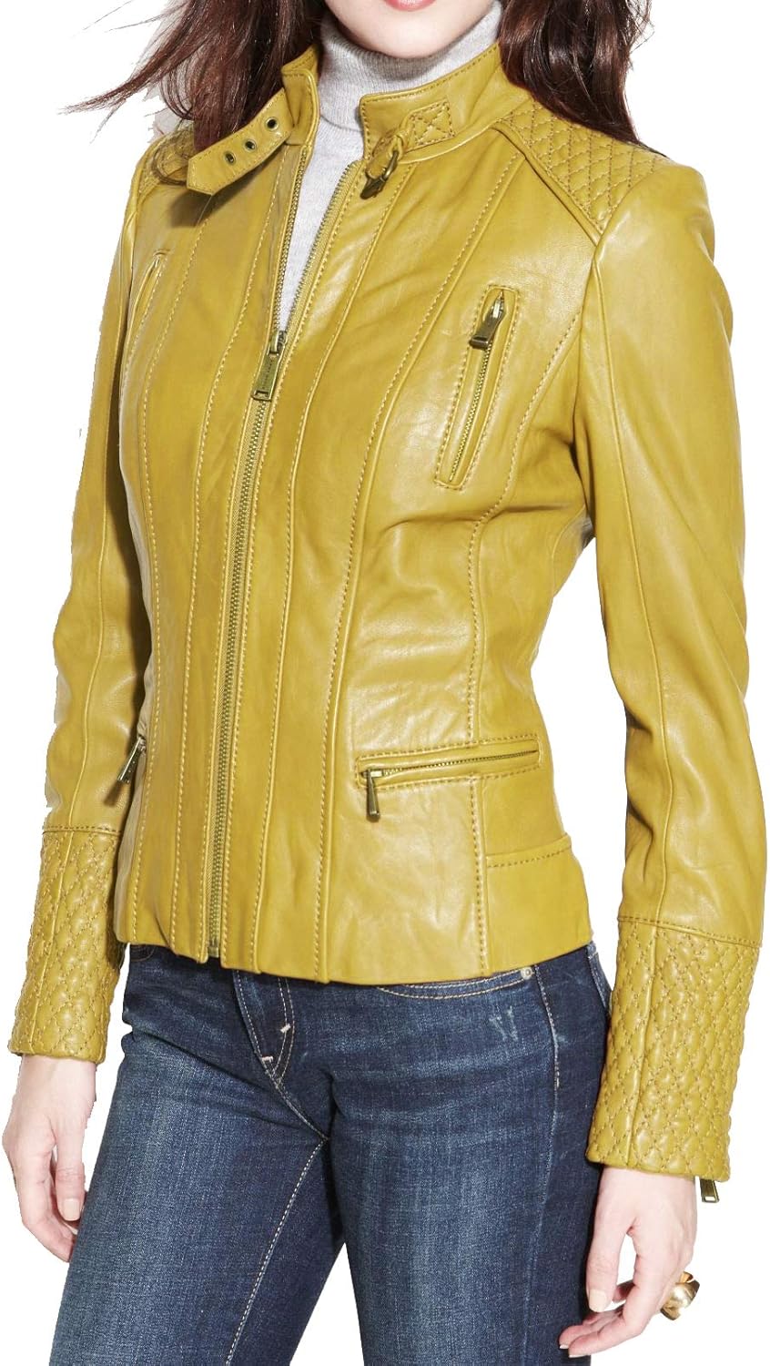 KAINAT Women's Leather Jackets - Biker Lambskin Leather Jacket For Girl, Stylish Party Wear Jackets