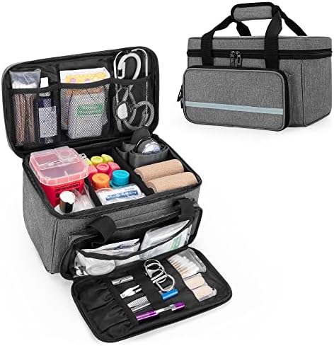 CURMIO Small First Aid Bag Empty, Family First Aid Kit Case, Medicine Storage Organizer Box for Home and Travel, Gray (Patent Pending)